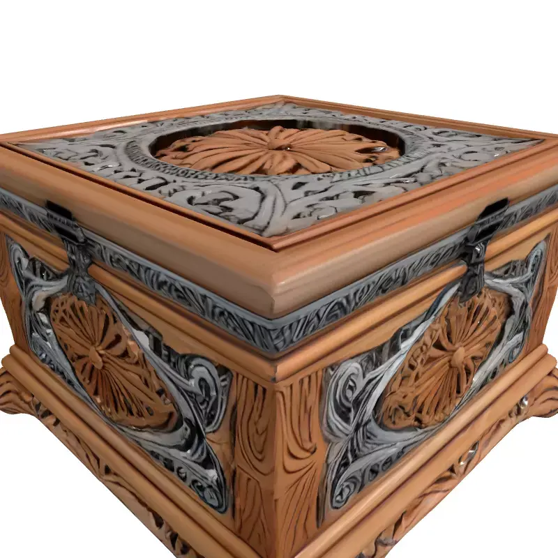 This exquisite 3D model presents an ornate wooden box, meticulously crafted with intricate carvings and elegant metallic accents. It features elaborate floral and scrollwork patterns carved directly into the rich wooden surface, complemented by filigree metallic overlays, enhancing its luxurious and antique aesthetic. The model represents a high-detail treasure chest, jewelry box, or a decorative keepsake container, exuding an air of mystique and historical charm. This versatile asset is perfect for a wide range of applications, from enriching the realism of high-fidelity game environments—especially fantasy RPGs, historical settings, or puzzle games—to serving as a captivating focal point in architectural visualizations of opulent interiors or classical studies. It is also well-suited for digital art compositions, cinematic renders, and immersive AR/VR experiences, adding a sophisticated and mysterious touch. The model is built with clean, optimized topology and is fully UV unwrapped, ensuring optimal texture application and rendering quality across various platforms. It is ready for subdivision, allowing for even greater detail in close-up shots, making it ideal for high-resolution static renderings where visual fidelity is paramount. This asset includes high-quality PBR textures for realistic material representation. While highly detailed, it can be adapted for real-time applications with appropriate LODs and scene optimization. Supported file formats typically include GLB, OBJ, FBX, USD, STL, ABC, DAE, and PLY, ensuring broad compatibility. The intricate design also makes it a potential candidate for high-detail 3D printing, requiring careful preparation. Its stunning craftsmanship makes it an ideal container for virtual precious jewels, ancient artifacts, or hidden treasures within any digital narrative.