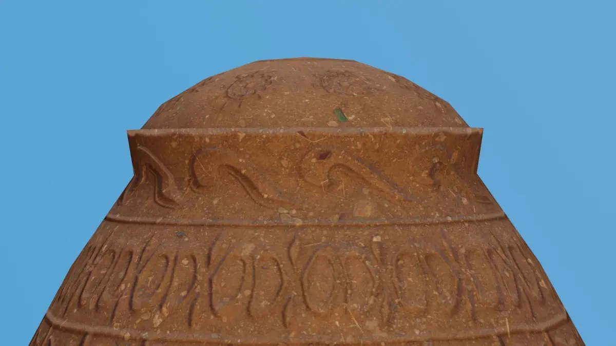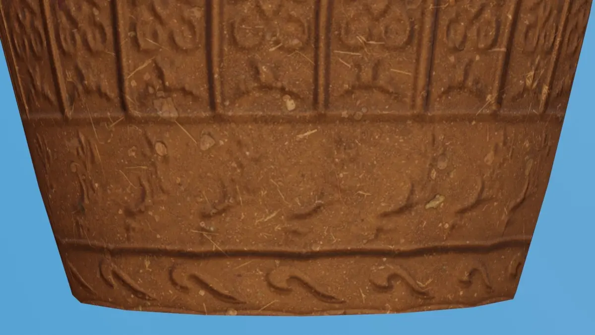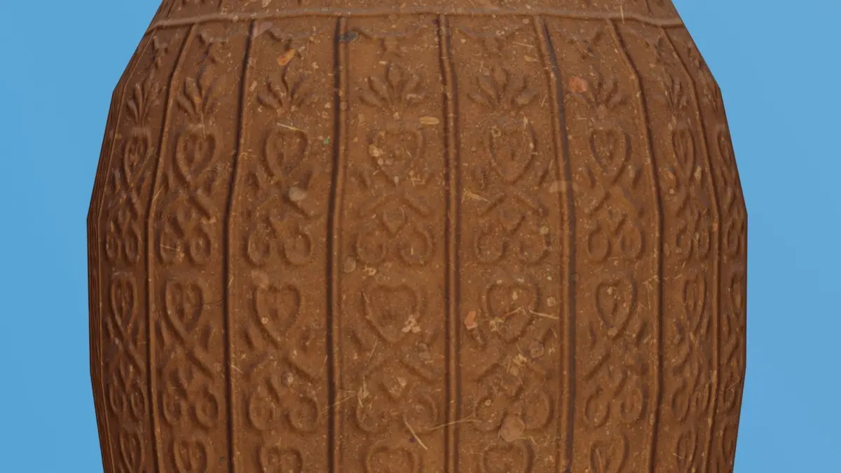This is a extemely detailed realistic 3D Blender model of a decorated clay urn.