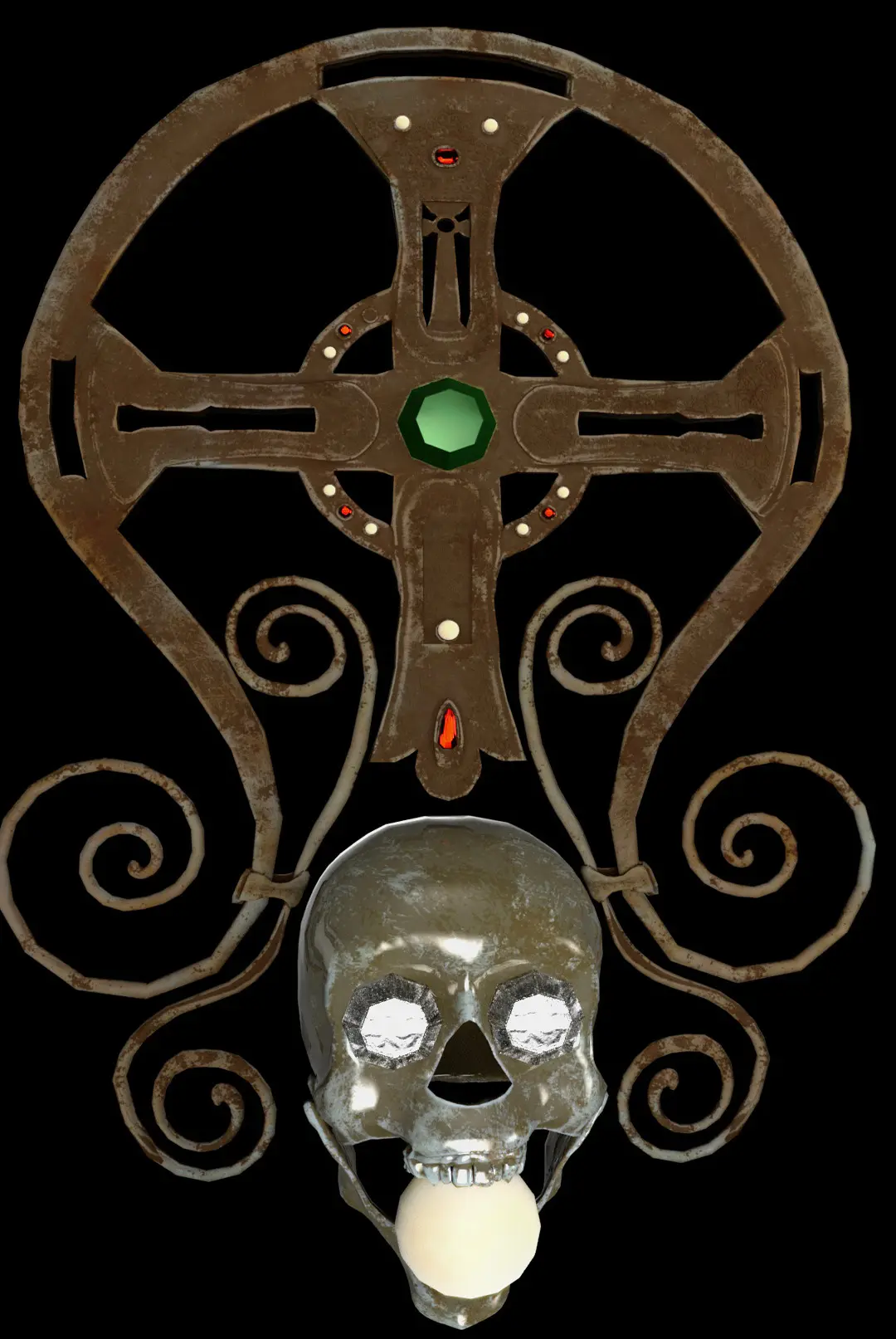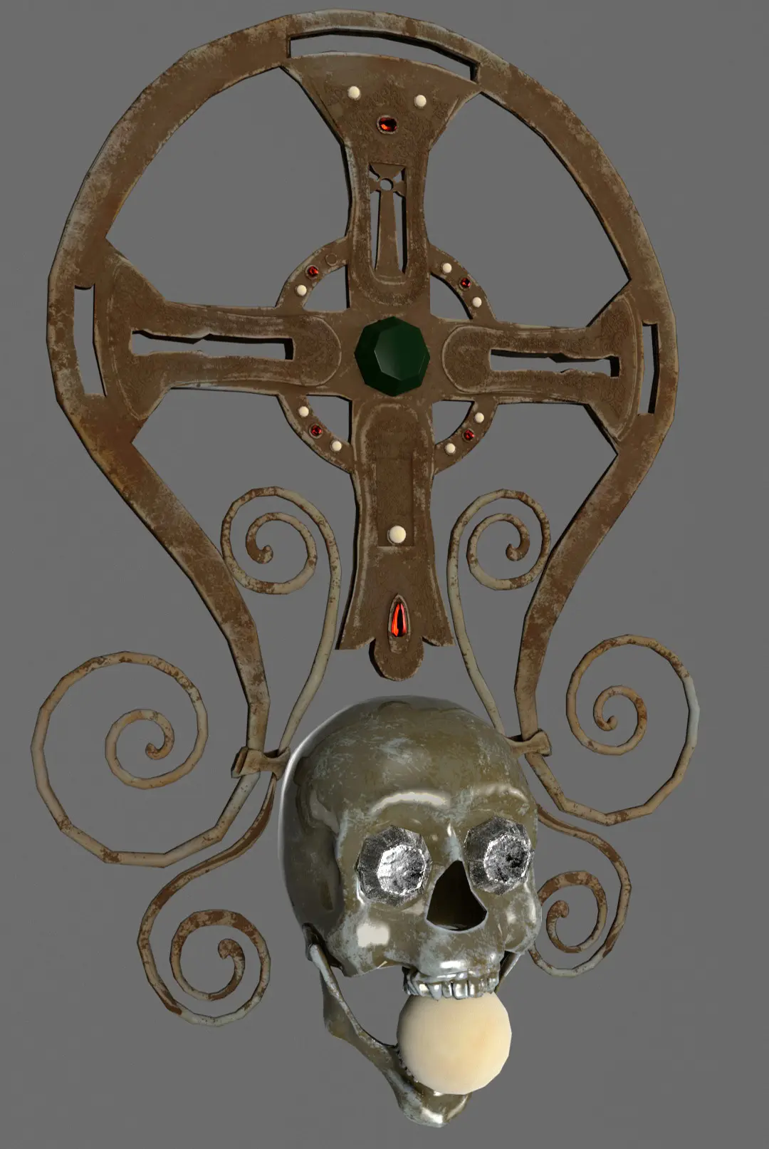 Introduce a touch of elegance and historical significance to your projects with this meticulously crafted 3D model of an ornate decorative cross. This model features intricate design elements, including a central green gemstone and smaller red gemstones, complemented by a harmonious blend of straight and curved lines. Encased in a circular frame, the cross boasts additional decorative swirls extending from the bottom, showcasing exceptional craftsmanship and attention to detail.