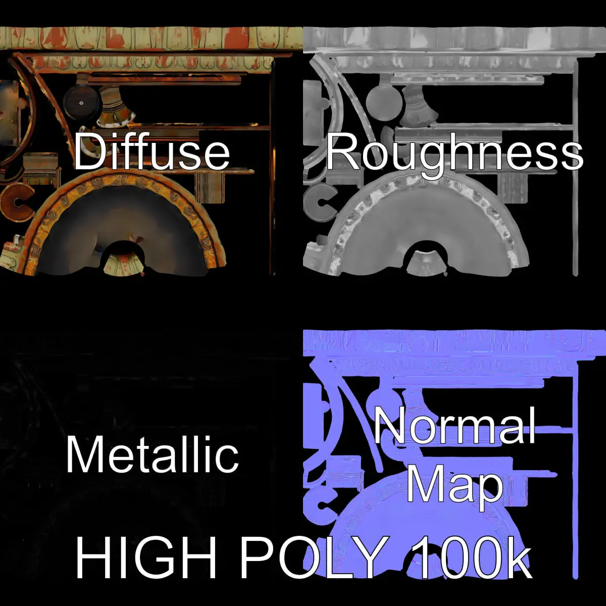 This 3D model pack features an Ornate Decorative Fountain, ideal for garden scenes, architectural visualization, or historical reconstructions. Each model is available in three levels of detail, perfect for various applications from mobile games to high-quality production rendering. Textures include PBR, Diffuse, NormalMap, and reflection/roughness/metallic, all 4096x4096 in size, ensuring compatibility with any modern rendering engine. The models feature accurately unwrapped UVs with no overlaps. The first image is the reference used for creating the 3D model. It is important to carefully evaluate the quality of the model by examining the preview images that display the topology and polygonal mesh. These previews (WIRE and WEB 3D Preview) clearly demonstrate how accurately the model matches the original reference and how well the geometry has been executed. If you like this model, please leave a comment and like!