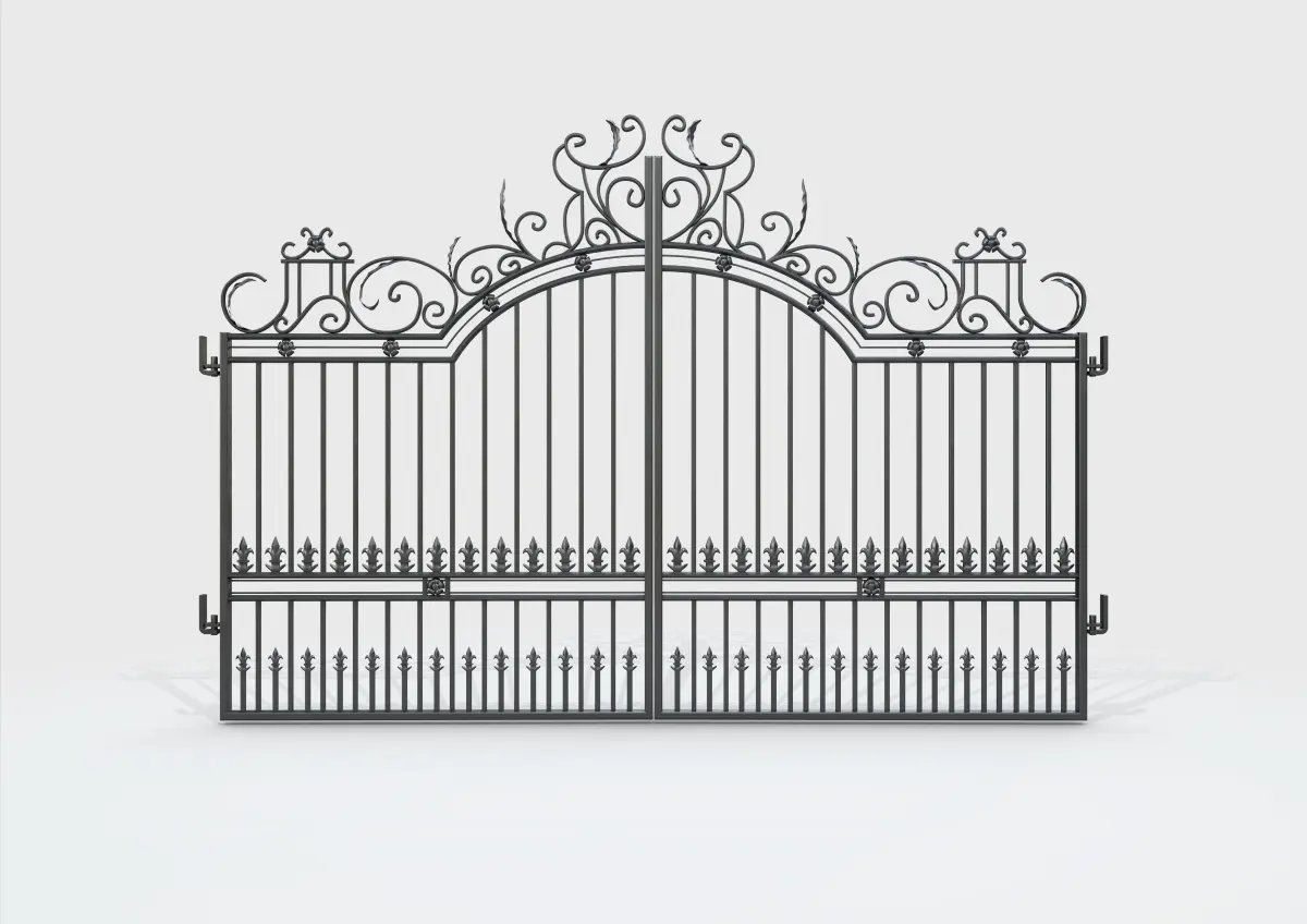Contains procedural and parametrized meshes which may translate to higher poly count than stipulated if converted to other formats. An intricate and decorative driveway entrance gate made of cast iron