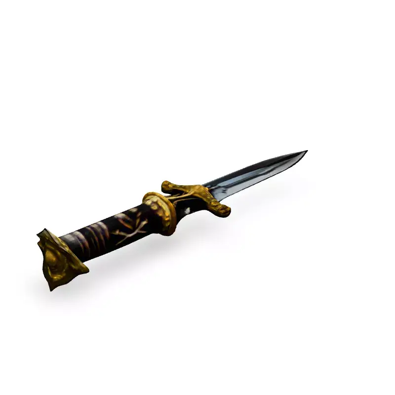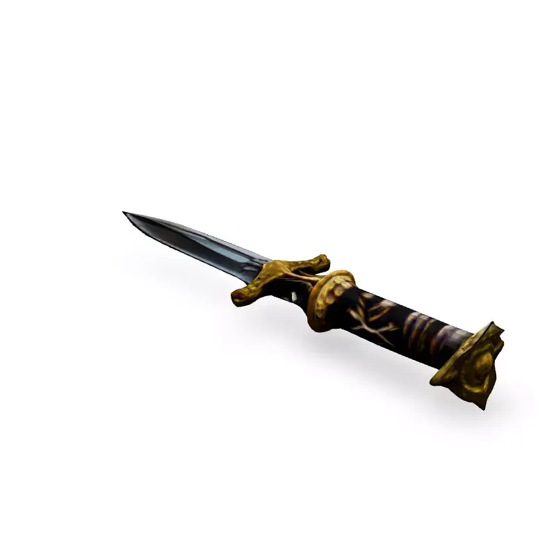 This highly detailed 3D model of an ornate fantasy dagger is perfect for game development, especially RPGs and fantasy titles. It features a sharp, double-edged blade and an intricately designed hilt with gold and black accents. The model can also be used in other applications such as film, animation, or as a digital art piece. It's available in multiple formats including FBX, OBJ, GLB, STL, and DAE, ensuring compatibility with various software. The model is optimized for both real-time use in games and high-quality renders for cinematic sequences. The dagger features clean topology, is UV unwrapped, and includes high-resolution PBR textures for realistic rendering. It's ready to be imported into your project and can easily be customized further. Whether wielded by a hero or villain, this dagger adds a touch of elegance and danger to any scene. The model's detail makes it suitable for close-up shots and its low poly count ensures smooth performance in game engines. Its intricate design also makes it a potential candidate for 3D printing, allowing for physical manifestations of the digital asset. The dagger's versatile design makes it an excellent addition to any fantasy-themed project.