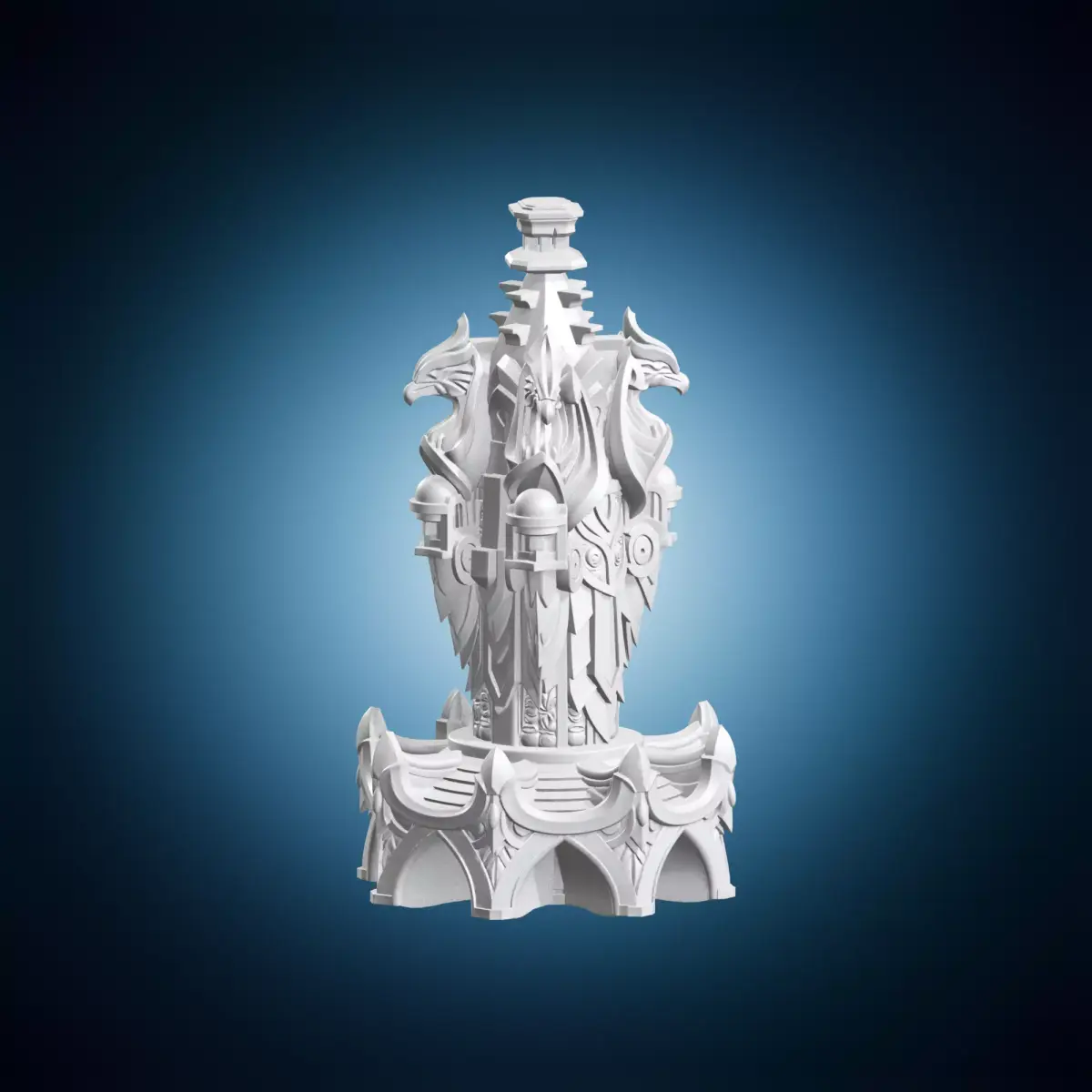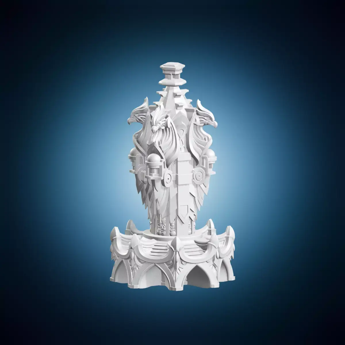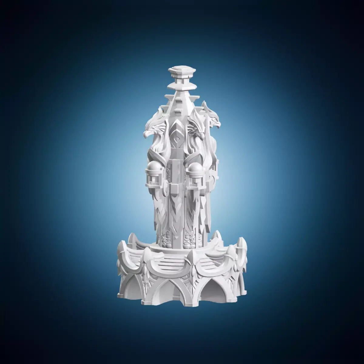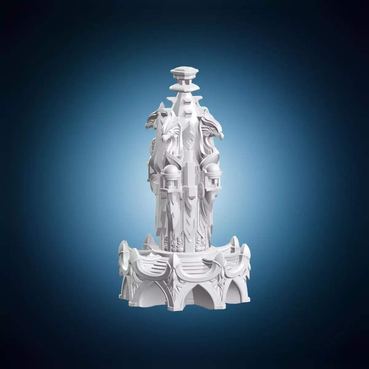 A beautifully crafted, ornate pillar featuring intricate griffin statues, suitable for fantasy environments, architectural displays, decorative accents, or collectible sculptures. The model is ideal for interior designers, architects, and fans of mythical creatures. Its elaborate design makes it perfect for use in virtual reality applications, video games, or as a prop in photography shoots. The ornate pillar can be easily customized to fit various themes and styles, from medieval to modern fantasy settings. This 3D model is available for immediate download and use in personal or commercial projects.