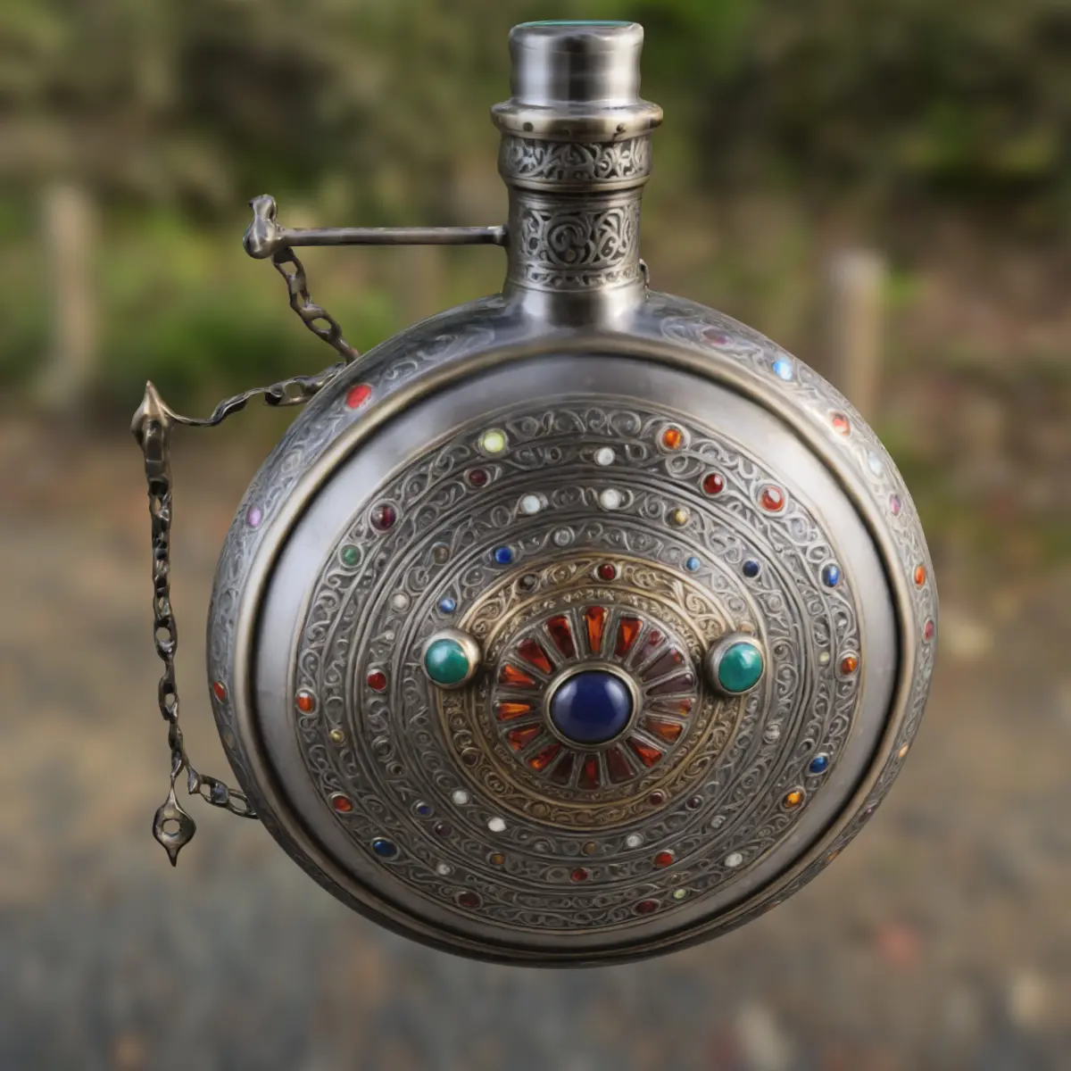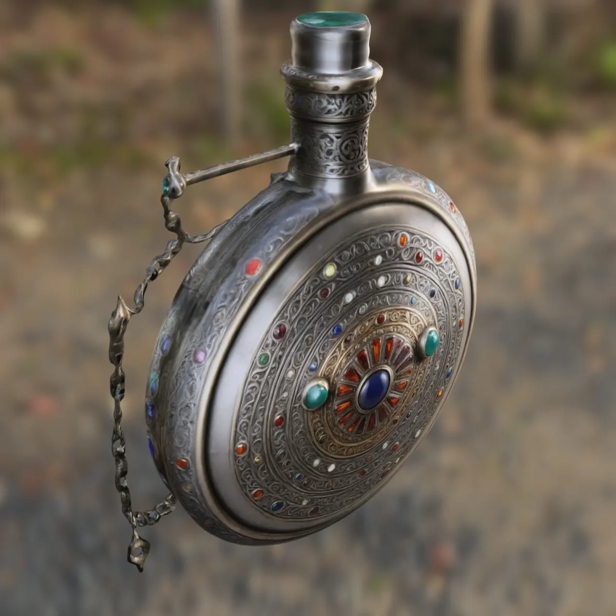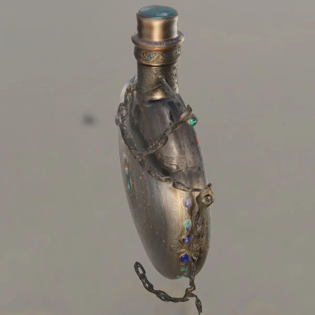 The Ornate Fantasy Potion Flask is a highly detailed 3D model of a magical elixir bottle, crafted with intricate metallic patterns and embedded with colorful mystical gemstones. Perfect for fantasy, medieval, RPG, or alchemy-themed environments, this asset serves as a collectible, quest item, or decorative prop.