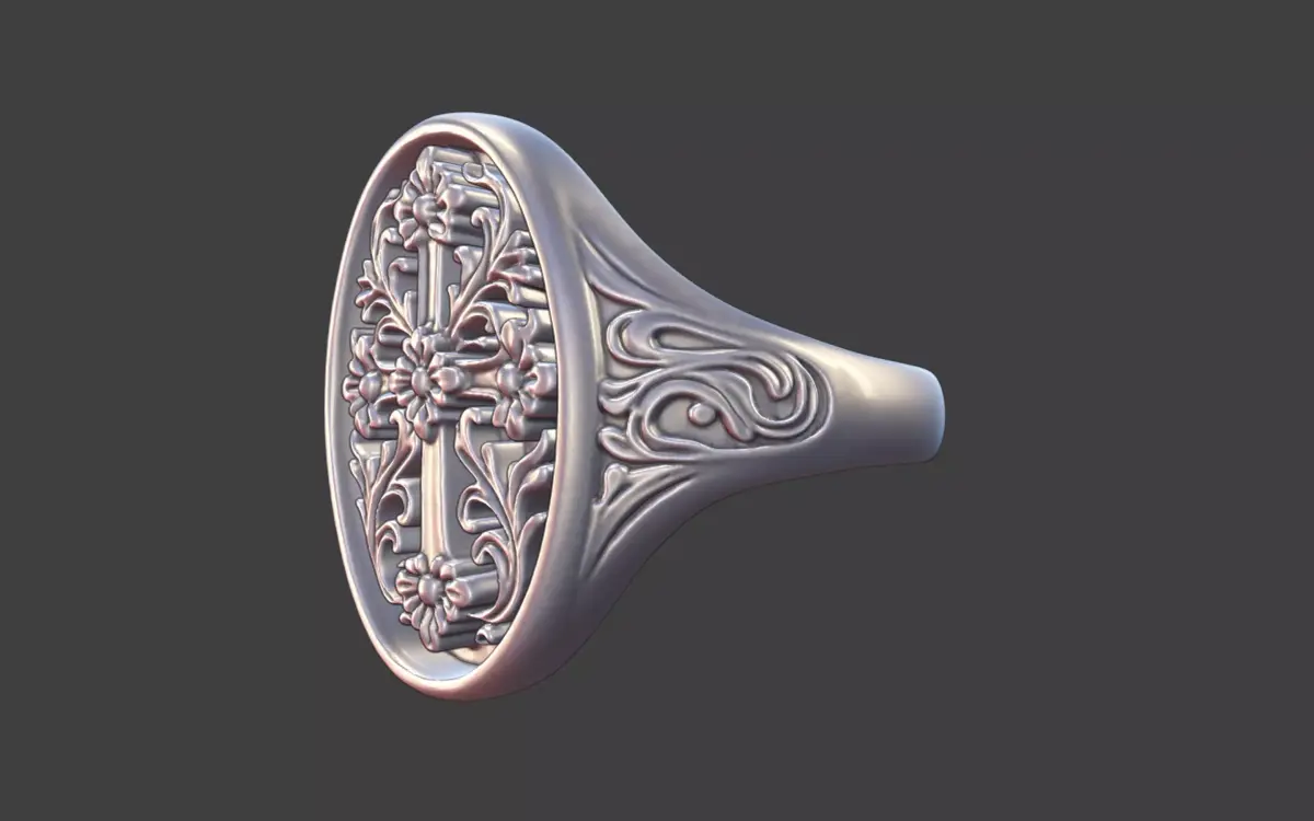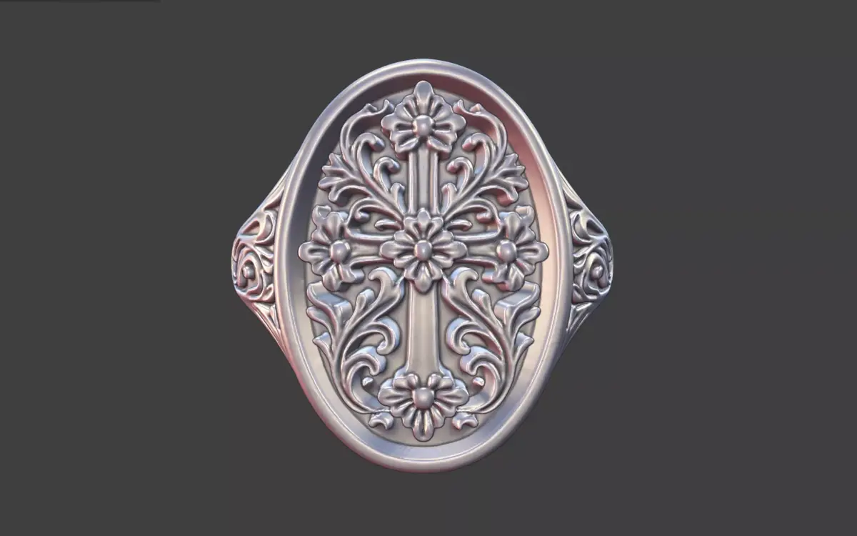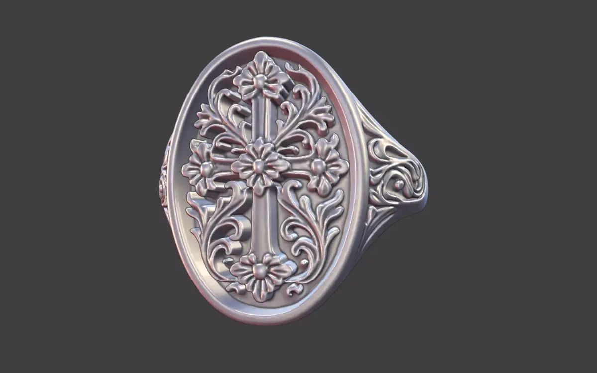 This Ornate Floral Cross Ring blends gothic symbolism with delicate natural motifs, creating a unique statement piece.The ring features a central cross surrounded by intricately sculpted flowers , giving it a harmonious balance of strength and elegance.Each detail is carefully designed to highlight texture and depth, making it ideal for 3D printing or casting in sterling silver.