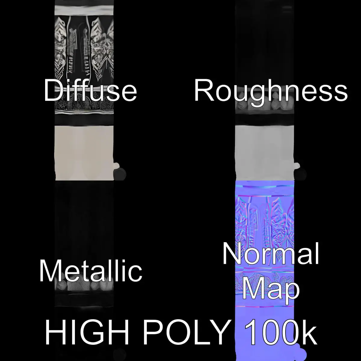 This model pack features an ornate fountain pen with intricate engravings and rich details, ideal for high-quality visualizations. It includes three levels of detail, making it suitable for game engines, production rendering, and interactive presentations. The PBR textures, including Diffuse, NormalMap, and reflection/roughness/metallic, are 4096*4096 in size. The model is perfectly unwrapped with no overlapping UVs, ensuring pristine texture mapping.