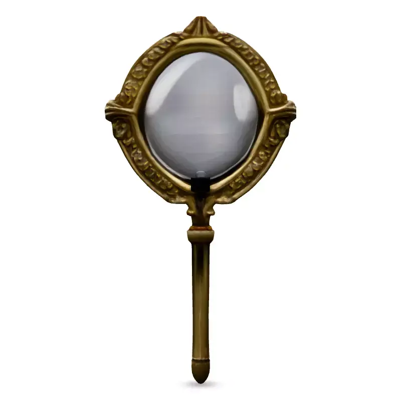This 3D model depicts a highly detailed, ornate gold magnifying glass. Ideal for use in game development, film, architectural visualization, and other creative projects. The model is available in several formats, including FBX, OBJ, GLB, and STL, offering compatibility with various software packages. Optimized for both real-time and static rendering applications, it can seamlessly integrate into game engines or be utilized for high-quality renders. Key features include a meticulously crafted gold frame with intricate detailing, a realistic glass lens, and clean topology. It's PBR textured, UV unwrapped, and ready for subdivision, allowing for high-resolution close-ups. The model's design evokes a sense of classic elegance, making it suitable for historical or fantasy settings. Whether used as a prop, a focal point in a scene, or part of a larger collection, this magnifying glass adds a touch of sophistication and intrigue. The high-quality textures and materials provide realistic light interaction, enhancing the visual appeal of the model. This magnifying glass is a versatile asset that can enrich any project.