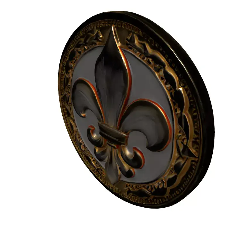 This is a meticulously crafted 3D model of an ornate Fleur-de-lis emblem, showcasing a timeless design with rich detailing. The central Fleur-de-lis is rendered in polished gold, contrasting beautifully with a brushed silver background, all encircled by an intricately carved golden border featuring delicate floral patterns. This versatile asset is ideal for a wide range of creative applications, bringing a touch of regal elegance to your projects. It can serve as a captivating prop in game development, perfect for historical titles, fantasy settings, or as a collectible item. Designers can integrate it into architectural visualizations to adorn historical buildings or classical interiors. Its robust detail also makes it suitable for high-quality renderings in digital art compositions and cinematic scenes. The model is prepared with clean topology and is likely UV unwrapped, supporting PBR textures to achieve its realistic metallic appearance. It is suitable for both high-resolution static renders and can be optimized for real-time applications such as augmented reality (AR) and virtual reality (VR) environments, or even used as a unique UI element. Furthermore, its design lends itself well to 3D printing for physical reproductions like medallions, decorative wall art, or unique jewelry components. Supported file formats typically include GLB, OBJ, FBX, STL, DAE, USD, ABC, and PLY, ensuring broad compatibility across various 3D software and platforms. Whether for historical simulations, decorative embellishments, or symbolic representations, this Fleur-de-lis emblem adds significant value and visual appeal.