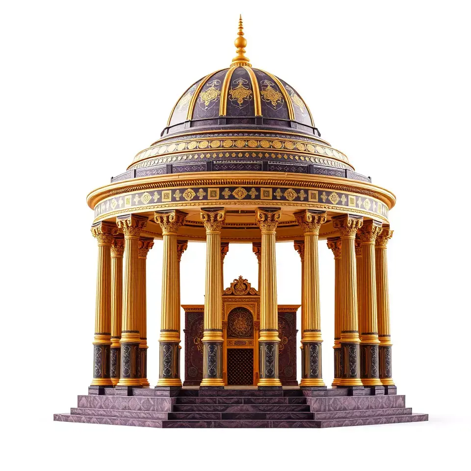 The Ornate Golden Pavilion model pack features a richly detailed architectural structure, perfect for historical scenes, animation, or as a stunning backdrop. Its majestic design includes intricate engravings and a grand dome, capturing the elegance of classical architecture.