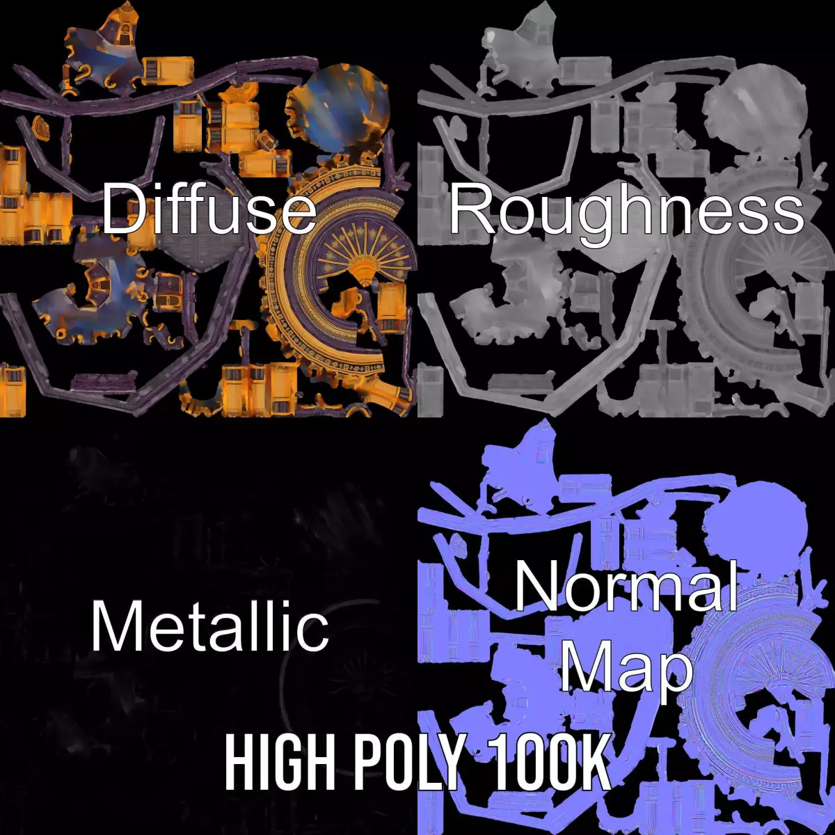 The model's textures are PBR, Diffuse, NormalMap, and reflection/roughness/metallic, suitable for any modern rendering engine. All models are accurately unwrapped with no overlapping UVs.