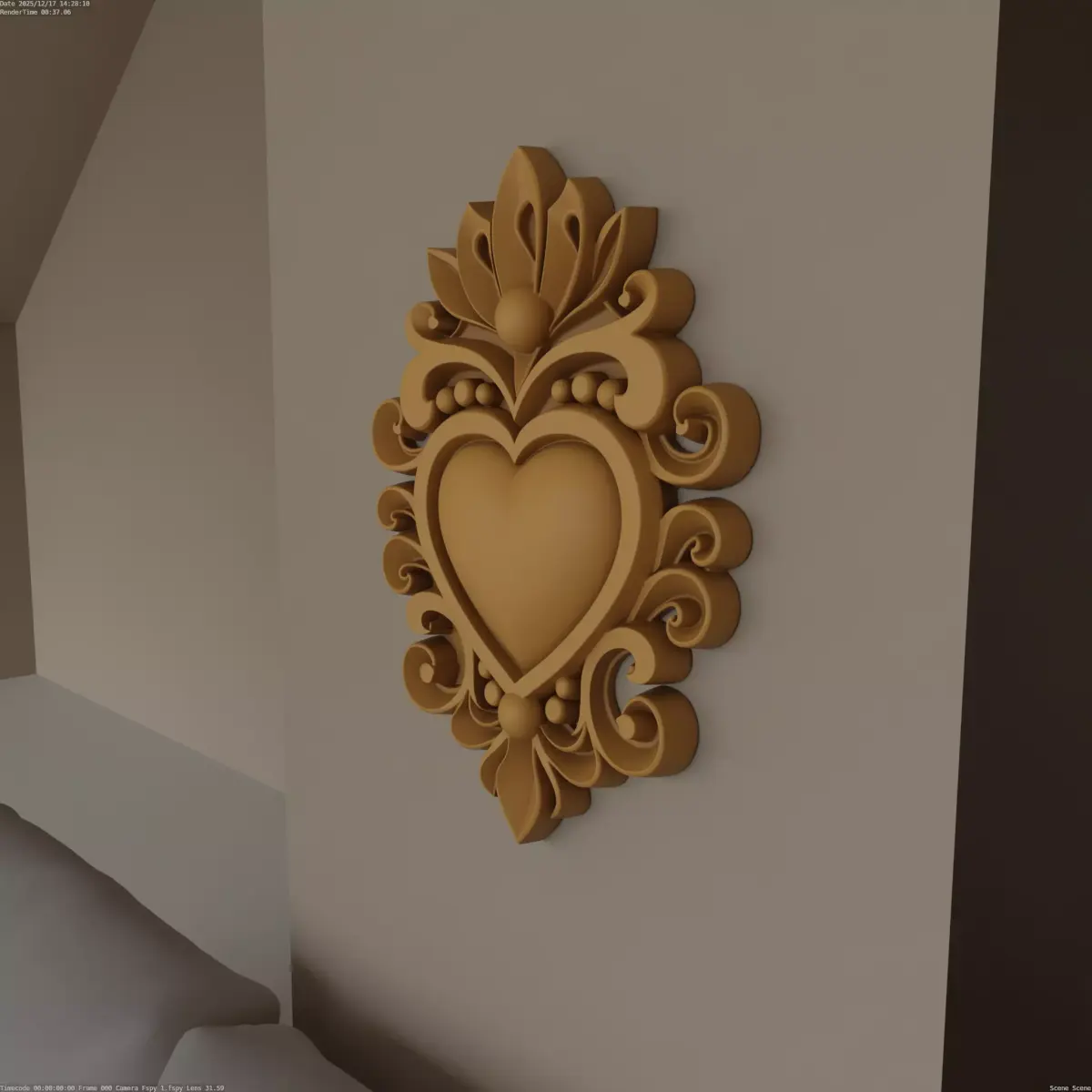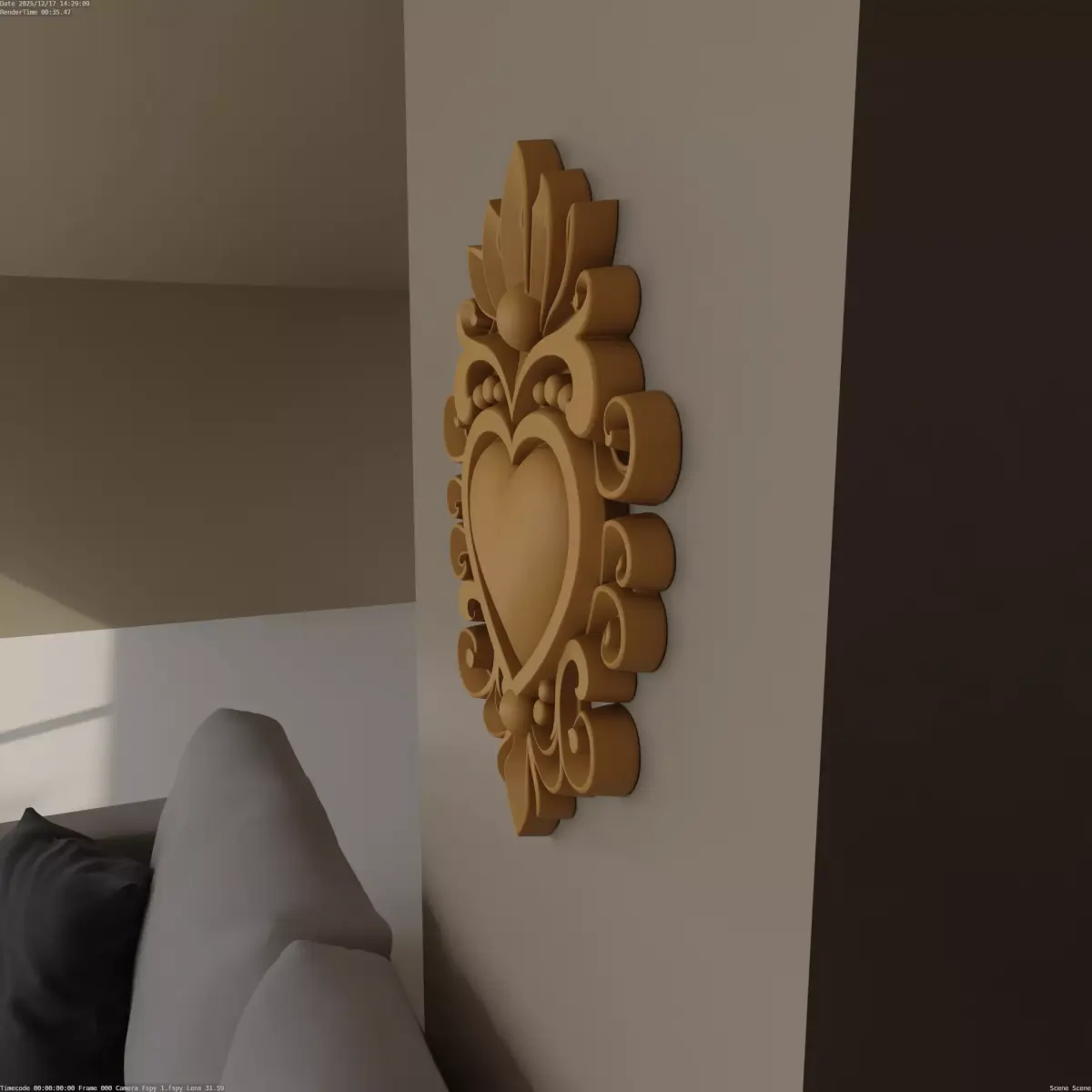 Design ConceptThis ornate heart wall decor features intricate details and a classical design, ideal for adding a touch of elegance to any interior space.