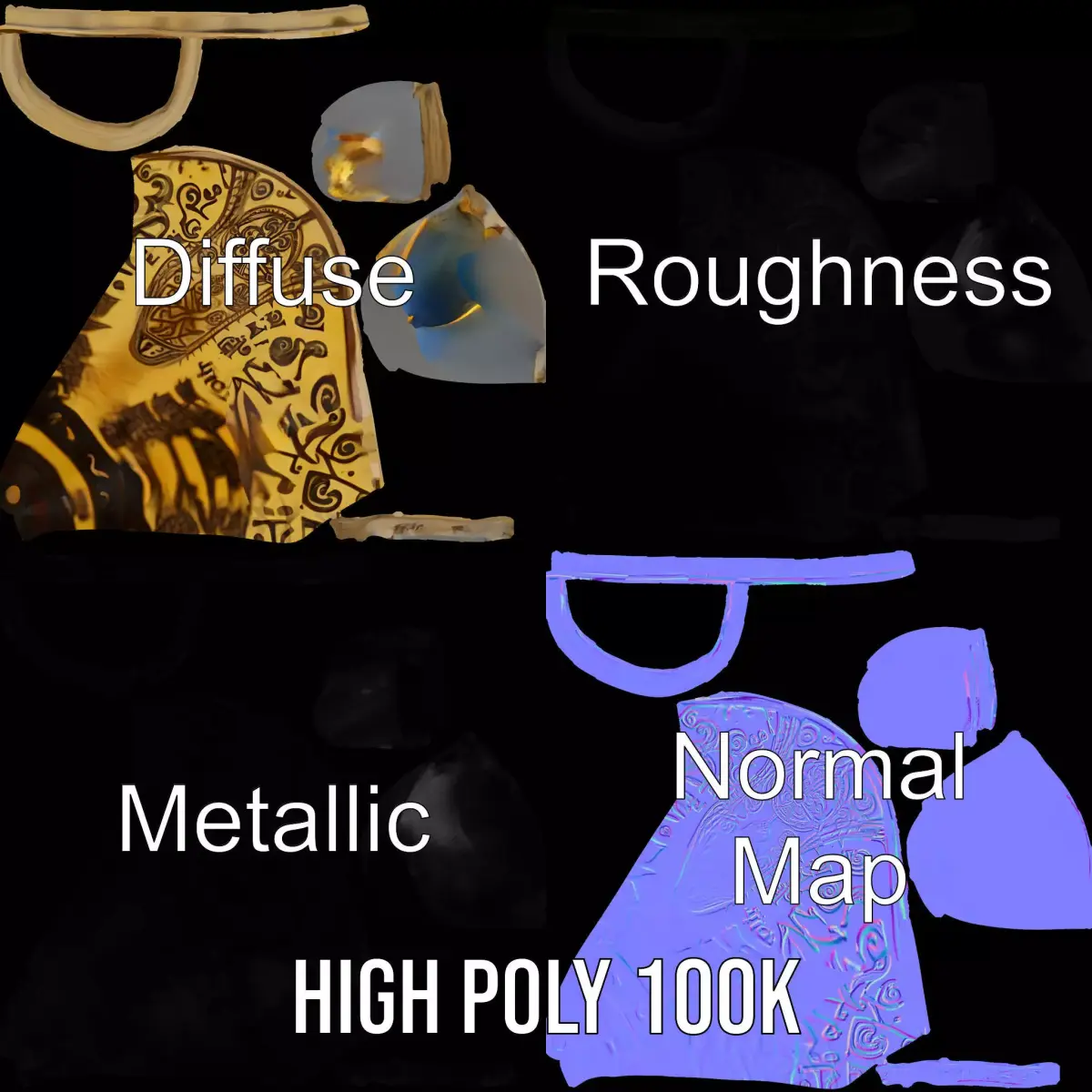 This exquisitely detailed ornate ivory pipe model features intricate carvings and a vintage aesthetic, perfect for use in historical scenes or detailed fantasy environments. Each model has 3 levels of detail: low-poly (1000 triangles for mobile), middle-poly (10,000 triangles for environment), and high-poly (100,000 triangles), which allows for the use of this model in production rendering (such as 3ds Max, Maya, Cinema 4D, Blender, V-Ray/Corona/Cycles, and others), game engines (Unity and Unreal compatible), and interactive presentations, providing a choice of detail based on the LOD System principle. The model's textures are PBR, Diffuse, NormalMap, and reflection/roughness/metallic, which are suitable for any modern rendering engine. All models are accurately unwrapped with no overlapping UVs. Perfect for movie props, detailed architecture, or as a collectible centerpiece in virtual libraries. All textures are 4096*4096 in size. If you like this model, please leave a comment and a like!