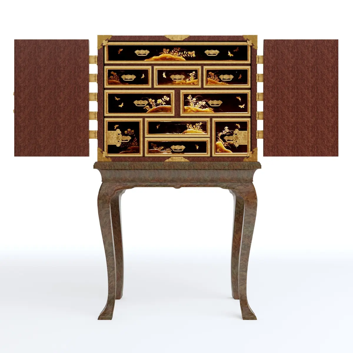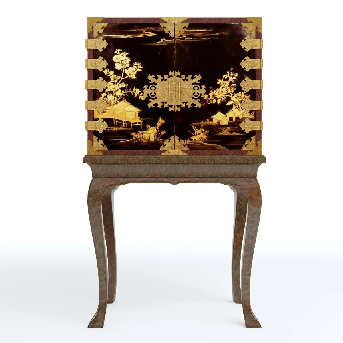 Ornate Japanese Cabinet modeled in 3ds max and comes ready to render in vray and Corona. Model is RIGGED so that doors open by rotating top hinge on each door.All finishes and materials are included. Modeled to scale and comes as a set. The UVWs are correctly set up and you just need to add you finish or use one of the ones included with the model.Modeled to correct scale with solid back.Format: 3Ds Max.Render Engine: Vray and Corona.Comes with UVW mapping and materials. Correct scale and ready to render.Download includes FBX and OBJ.