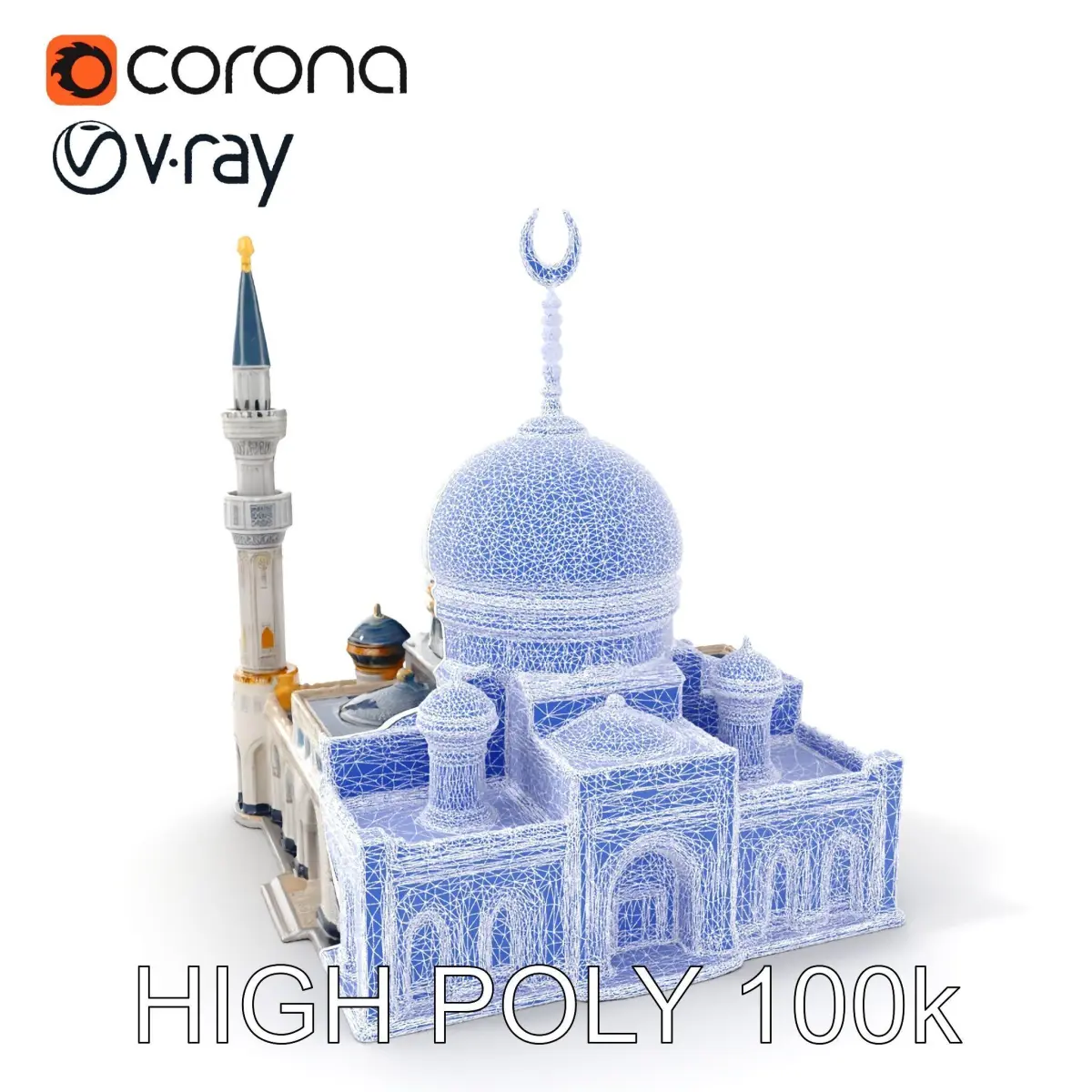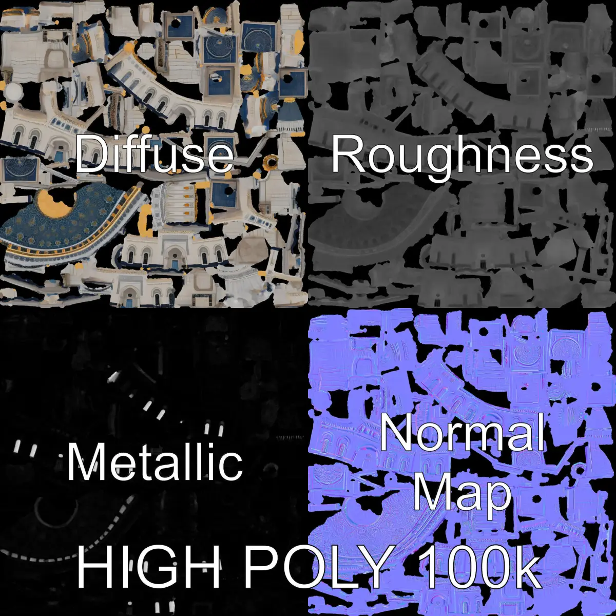 This mosque architectural model pack offers three levels of detail: low-poly, middle-poly, and high-poly, perfect for mobile applications, environmental rendering, and production-quality visuals. Ideal for use in 3D rendering software like 3ds Max, Maya, Cinema 4D, and Blender, as well as game engines such as Unity and Unreal. The detailed design, with PBR textures, diffuse, normal map, and reflection/roughness/metallic properties, allows the model to be seamlessly applied in various uses, whether for visualization, educational projects, or gaming. The 4096x4096 texture quality guarantees impressive realism with accurately unwrapped UVs and no overlapping. It is a versatile model suitable for interactive presentations and visual tours. The first image is the reference used for creating the 3D model. It is important to carefully evaluate the quality of the model by examining the preview images that display the topology and polygonal mesh. These previews (WIRE and WEB 3D Preview) clearly demonstrate how accurately the model matches the original reference and how well the geometry has been executed. Please like and comment on the model if you find it useful.