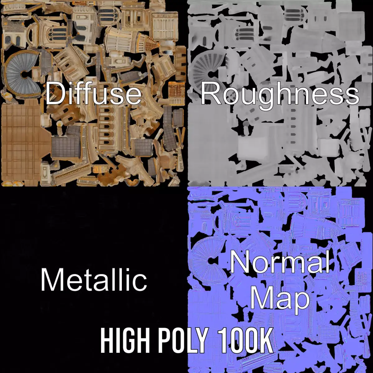 Discover the intricate details of the 'Ornate Mosque Architecture model pack', featuring a stunning Islamic design with elegant domes and minarets. Ideal for architectural visualizations, cultural exhibits, and historical recreations, each model offers three levels of detail (LOD): low-poly, middle-poly, and high-poly, catering to various platforms from mobile to high-end renderings. The textures are crafted in PBR with Diffuse, NormalMap, and reflection/roughness/metallic maps, perfectly suitable for any modern engine, and sized at 4096x4096 for maximum clarity. Models are meticulously unwrapped for seamless rendering. If you appreciate the craftsmanship, please like and leave a comment!