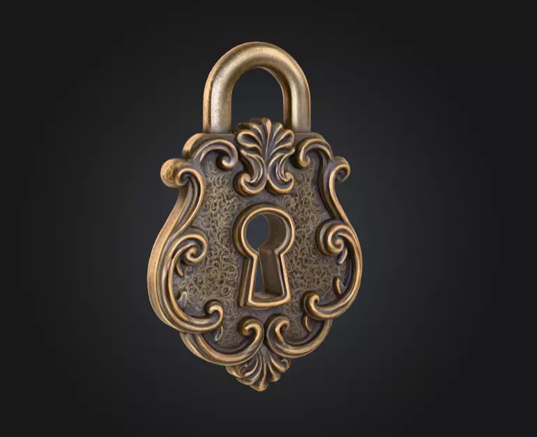 Every detail of this padlock has been meticulously sculpted and richly textured to reflect master metalwork and timeless beauty. The body of the lock features intricate engravings and decorative flourishes, from elegant scrollwork and filigree patterns to subtle hammered textures that reveal the touch of a craftsman’s hand. The curved shackle is carefully modeled with slight wear and micro-scratches, suggesting decades of faithful service while retaining structural strength. Optional ornamental inlays or embossed motifs—floral, heraldic, or geometric—can be emphasized through PBR textures to adapt the padlock for fantasy treasure hoards, gothic doors, or vintage steamer trunks.