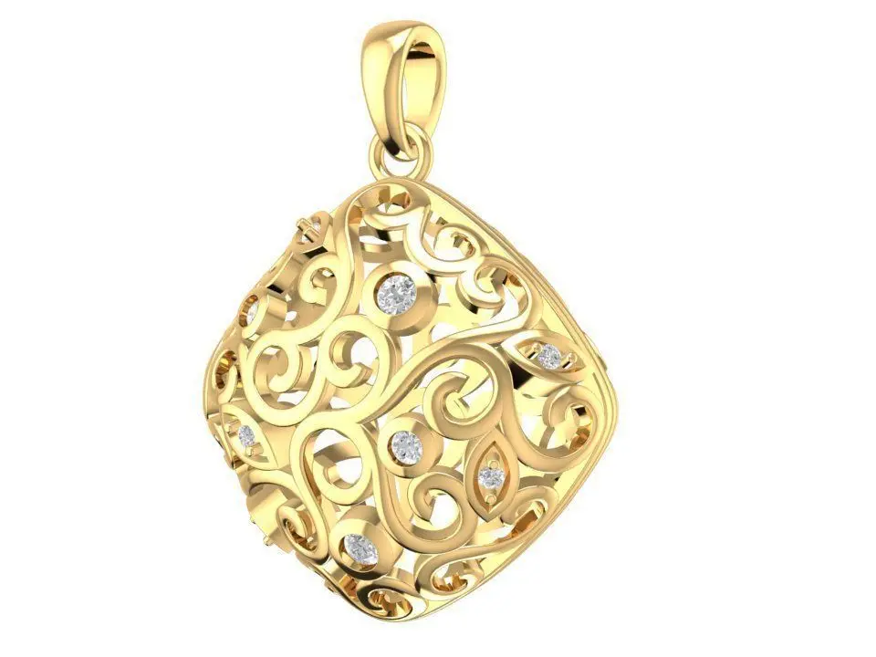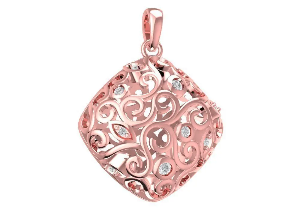 This ornate pattern square pendant showcases an elegant openwork design with flowing curves and detailed craftsmanship. The intricate filigree style brings a luxurious and timeless aesthetic, making it a standout piece for jewelry collections. This 3D CAD model is created with precise proportions and accurate geometry, suitable for 3D printing, CNC, or direct jewelry manufacturing. Perfect for jewelers, designers, and collectors who appreciate artistic detail and classical inspiration, this pendant combines tradition with modern design versatility.