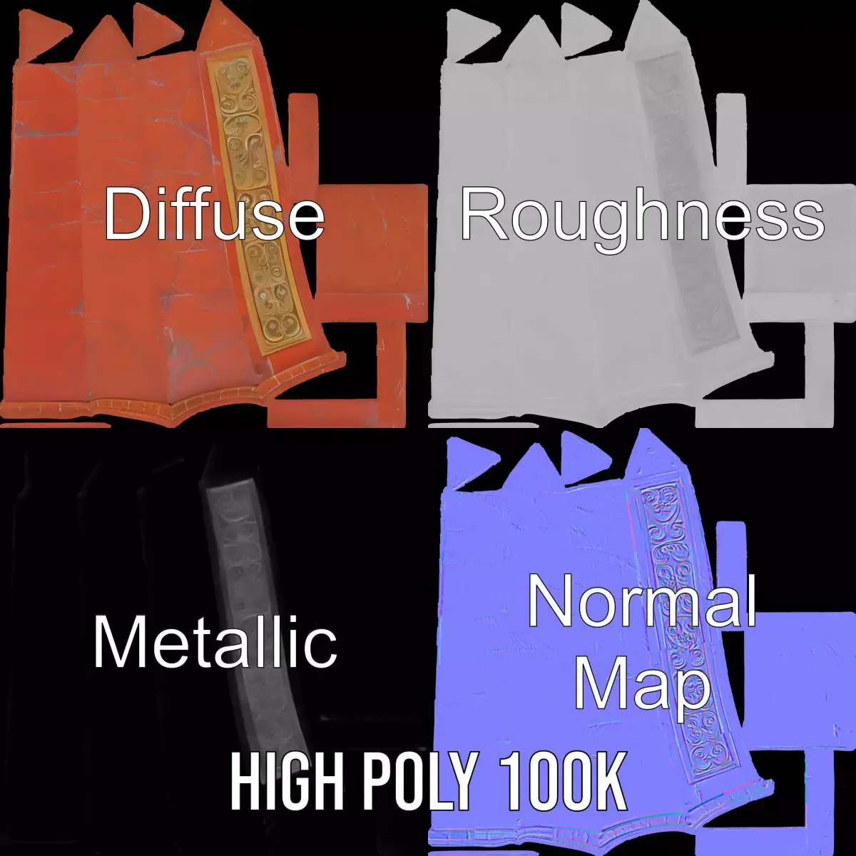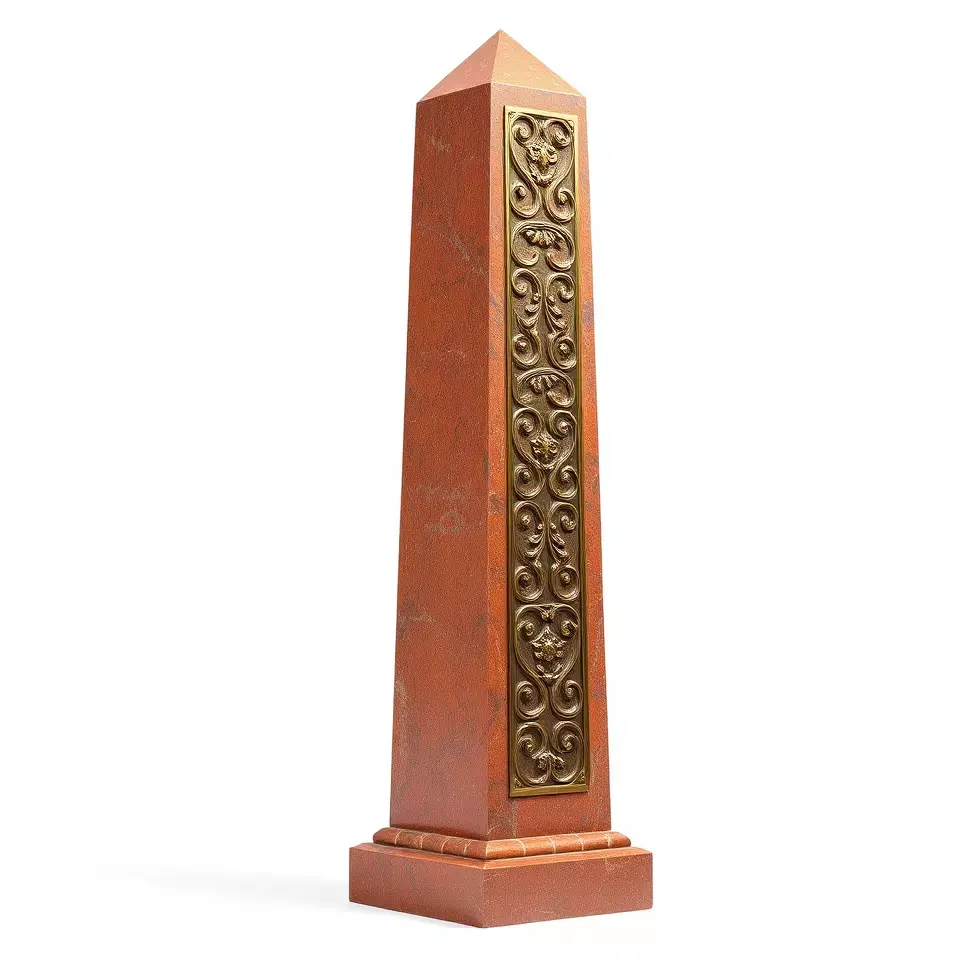 This 3D model of an ornate red obelisk features a carved gold detail, adding a touch of elegance and history to any scene. Its towering presence makes it perfect for architectural renderings, historical simulations, or games set in ancient or fantasy worlds. Each model has 3 levels of detail: low-poly(1000 triangles for mobile), middle-poly(10,000 triangles for environment), and high-poly(100,000 triangles), which allows for the use of this model in production rendering (such as 3ds Max, Maya, Cinema4D, Blender, Vray/Corona/Cycles and all others), game engines (Unity and Unreal compatible), and interactive presentations, providing a choice of detail based on the LOD System principle. The model's textures are PBR, Diffuse, NormalMap, and reflection/roughness/metallic, which are suitable for any modern rendering engine. All models accurately unwrapped and have no overlapping UV. All textures are 4096*4096 in size. If you like this model, please feel free to give it a like and leave a comment!