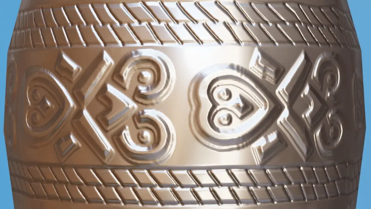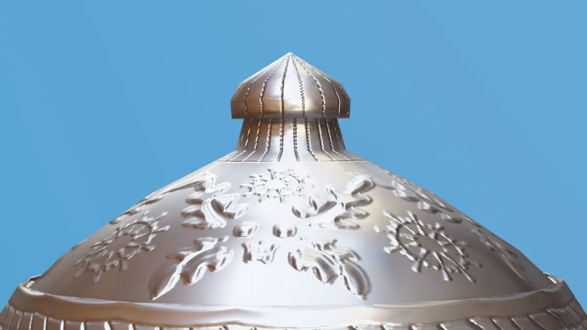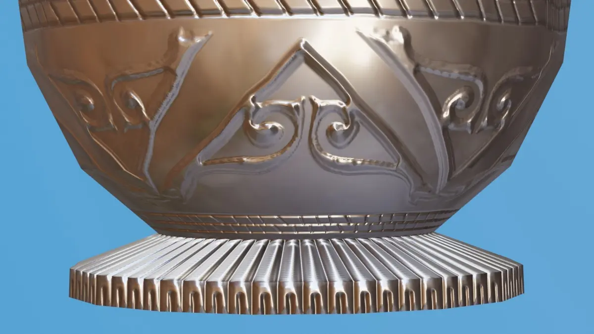 This is a extemely detailed realistic 3D Blender model of a decorated silver urn.