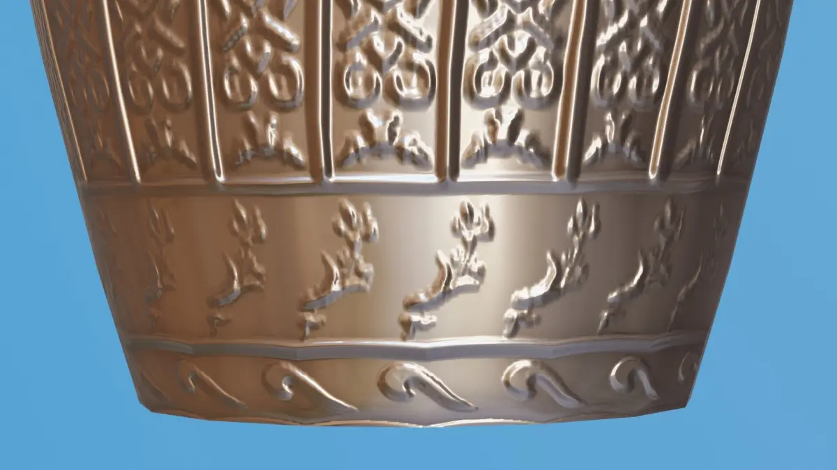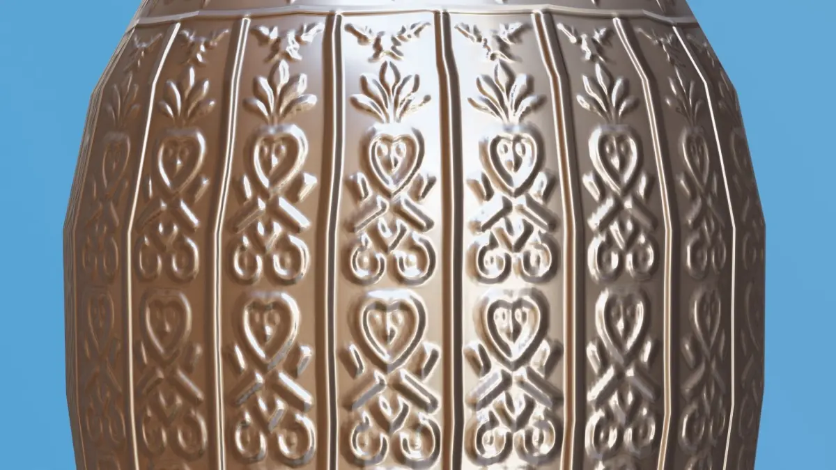 This is a extemely detailed realistic 3D Blender model of a decorated silver urn.