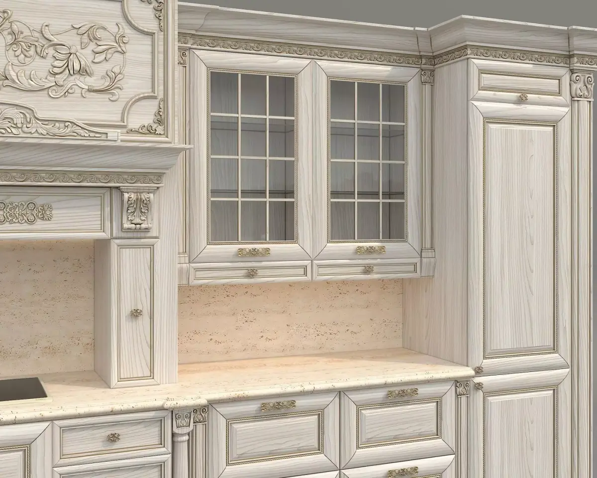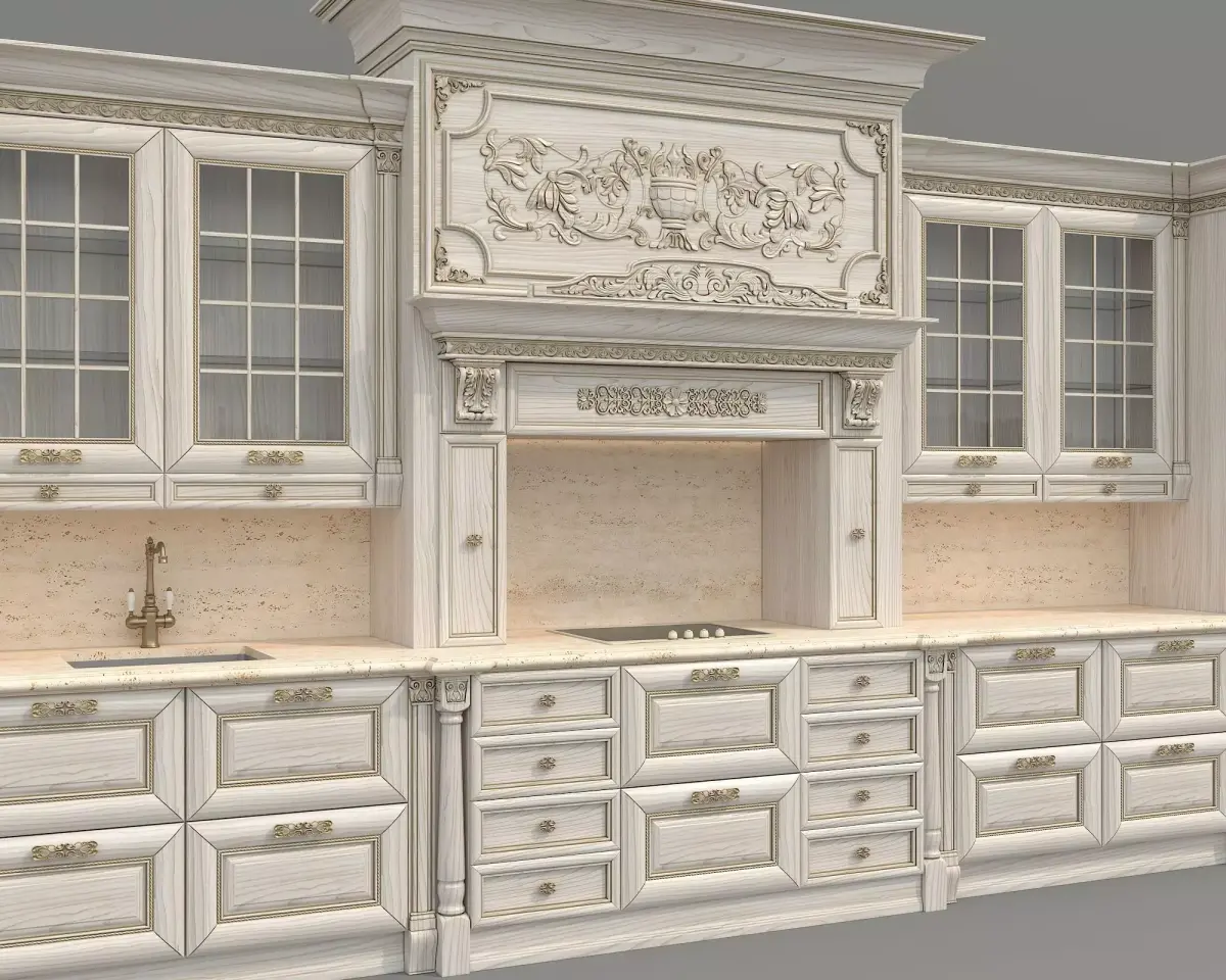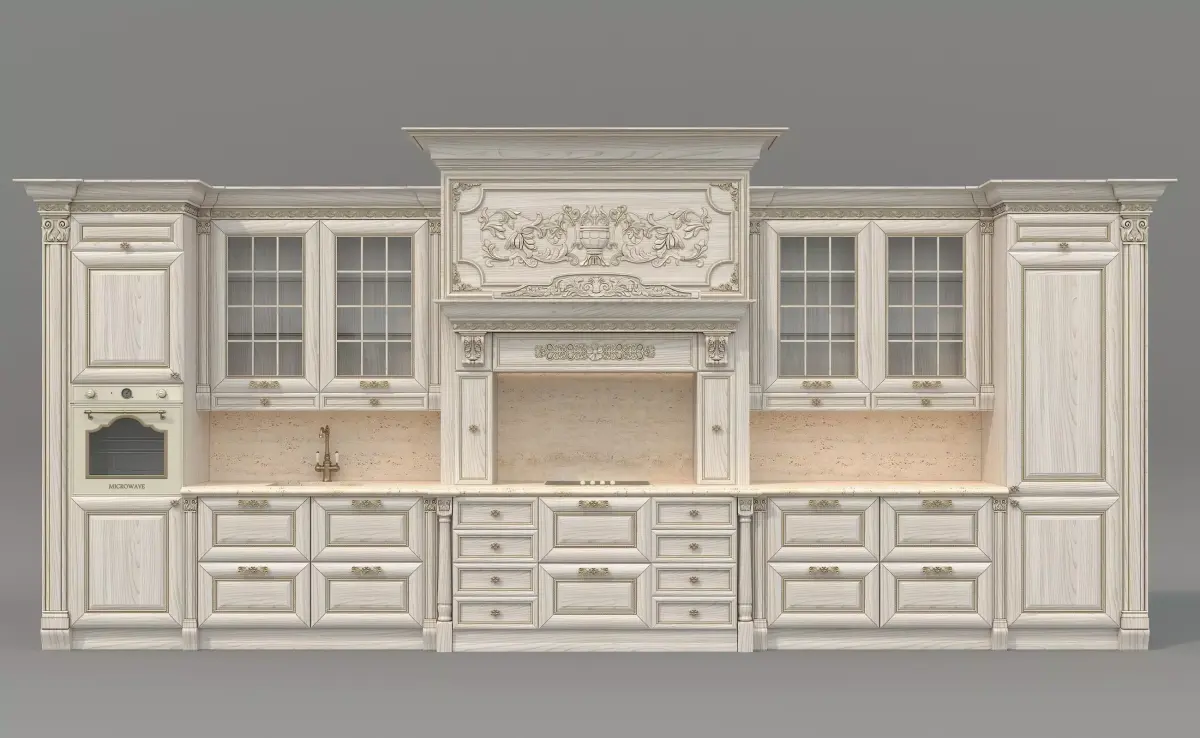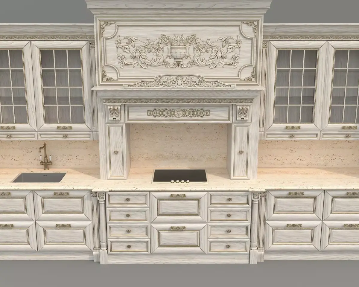 Product OverviewThis high-quality 3D model features a luxury neoclassical kitchen design, blending timeless elegance with modern functionality. Characterized by its intricate hand-carved ornaments, ornate moldings, and a sophisticated cream-white finish with subtle gold accents, this model is perfect for high-end interior visualizations.