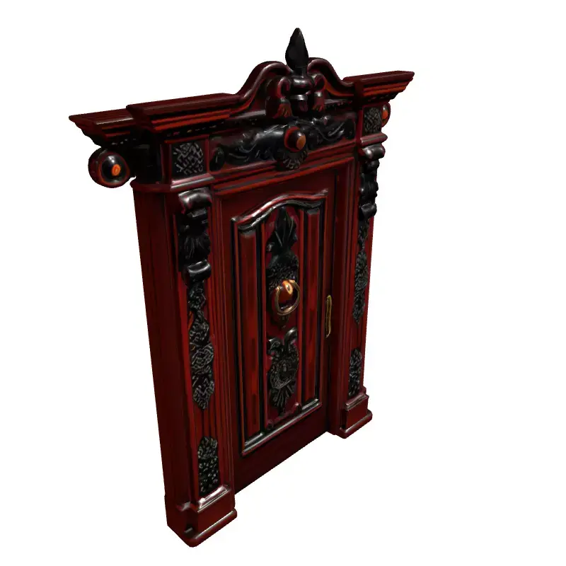 This exquisite 3D model presents a highly ornate, grand entrance door set, meticulously crafted in a distinct Victorian or Baroque style. The central feature is a rich, dark wooden door adorned with complex, hand-carved details, a decorative frame, and an eye-catching brass knocker. This model is perfect for elevating the visual fidelity of architectural visualizations (Arch-Viz), historical reconstructions, luxury interior/exterior scenes, and high-fidelity game environments where intricate detail is paramount. It is also well-suited for film and animation projects requiring a touch of classical grandeur, as well as high-end virtual and augmented reality (AR/VR) experiences. The package includes two beautifully designed vintage-style wall lanterns, complementing the door's aesthetic and providing ambient lighting solutions. The model boasts clean topology, is professionally UV unwrapped, and comes with high-resolution PBR (Physically Based Rendering) textures for realistic material representation of the dark wood, aged brass, and detailed metallic accents. It is prepared for seamless integration into various 3D pipelines, supporting common formats like GLB, OBJ, FBX, USD, DAE, ABC, and PLY. While highly detailed, it is optimized for efficient rendering in both real-time applications (with appropriate poly budget) and static scene compositions, ensuring photorealistic results. The intricate detailing makes it an ideal asset for adding a touch of timeless elegance and historical charm to any digital project.