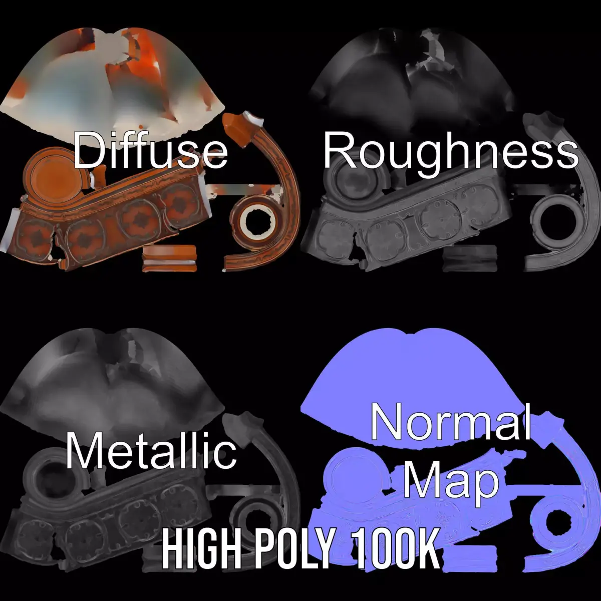 The Ornate Wooden Mug model pack features a detailed and intricately designed drinking vessel, perfect for both historical and fantasy settings. Each model has 3 levels of detail: low-poly (1000 triangles for mobile), middle-poly (10,000 triangles for environment), and high-poly (100,000 triangles), which allows for the use of this model in production rendering (such as 3ds Max, Maya, Cinema4D, Blender, Vray/Corona/Cycles and all others), game engines (Unity and Unreal compatible), and interactive presentations, providing a choice of detail based on the LOD System principle. This highly detailed mug is ideal for enhancing tavern scenes, medieval settings, or as a prop in virtual games. The model's textures are PBR, Diffuse, NormalMap, and reflection/roughness/metallic, which are suitable for any modern rendering engine. All models are accurately unwrapped and have no overlapping UV. All textures are 4096*4096 in size. Please like and leave a comment for the model if you liked it.