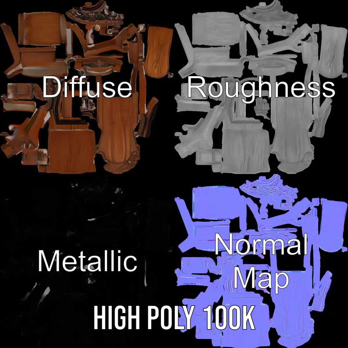 This Ornate Wooden Throne model pack is perfect for any setting requiring a touch of elegance and historical ambiance. The intricately carved design and rich wood texture make it ideal for use in virtual environments such as historical simulations, fantasy video games, or period films. The model provides three levels of detail: low-poly for mobile, middle-poly for environment, and high-poly for detailed production renderings. It features PBR textures including Diffuse, NormalMap, and reflection/roughness/metallic, all at 4096*4096 resolution, ensuring compatibility with modern rendering engines. Models are accurately unwrapped with no overlapping UVs. Please like and leave a comment if you enjoyed this model.
