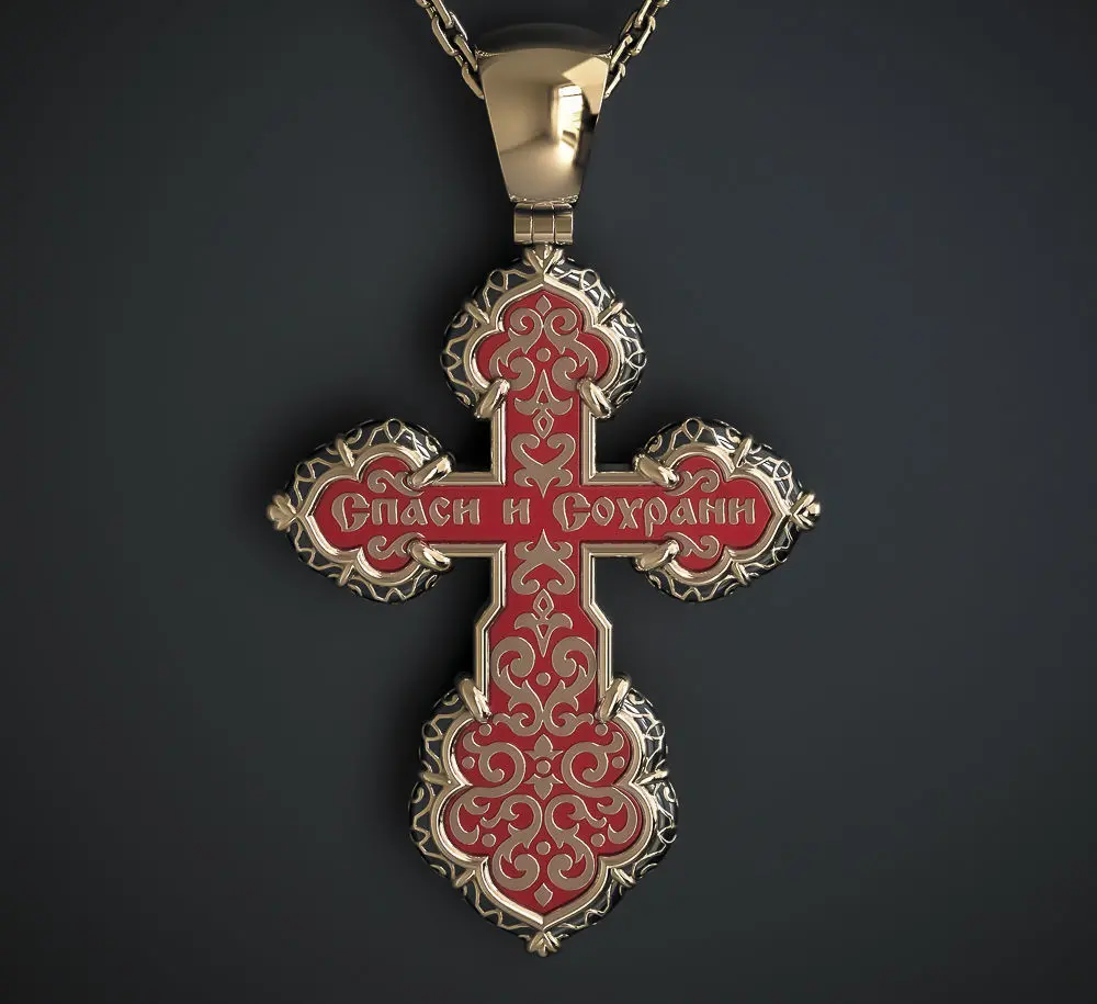 The cross is designed for manufacturing in precious and semiprecious metals, as well as with enamel.