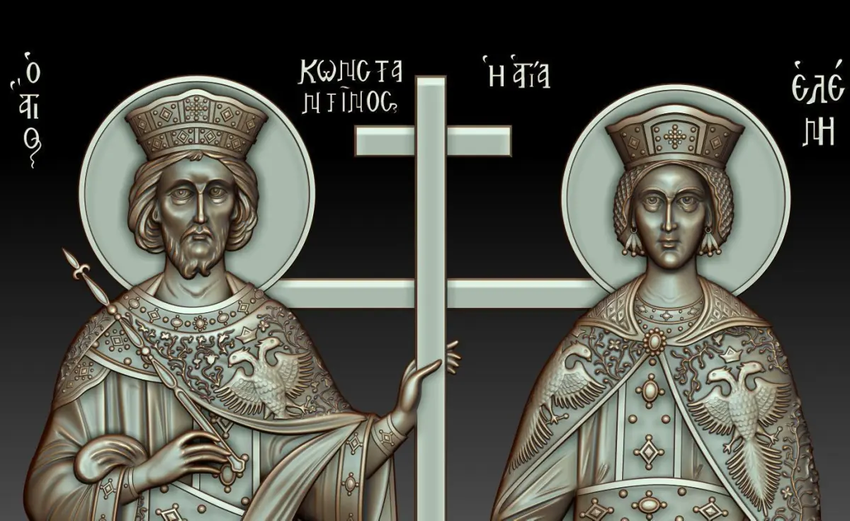 3d model Orthodox icon of Saints Constantine and Helen. For milling on CNC machines. Can be used in the production of souvenirs, furniture, jewelry. Files in stl format, for import to artcam, rhinoceros, 3ds max, etc. You can scale the model to any size you need.