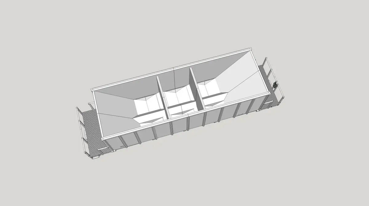 A 3D printable Ortner Rapid Discharge 3 Bay Aggregate Hopper in HO 1/87 scale, O 1/48 scale, and N 1/160. In HO and O, two versions are included, one with molded on grab irons and one for separately applied wire grab irons. In N, just molded on grab irons are included. Also two variations of internal bracing are included in all scales. In HO, use 33 inch wheels, otherwise the coupler will be too high without shimming.