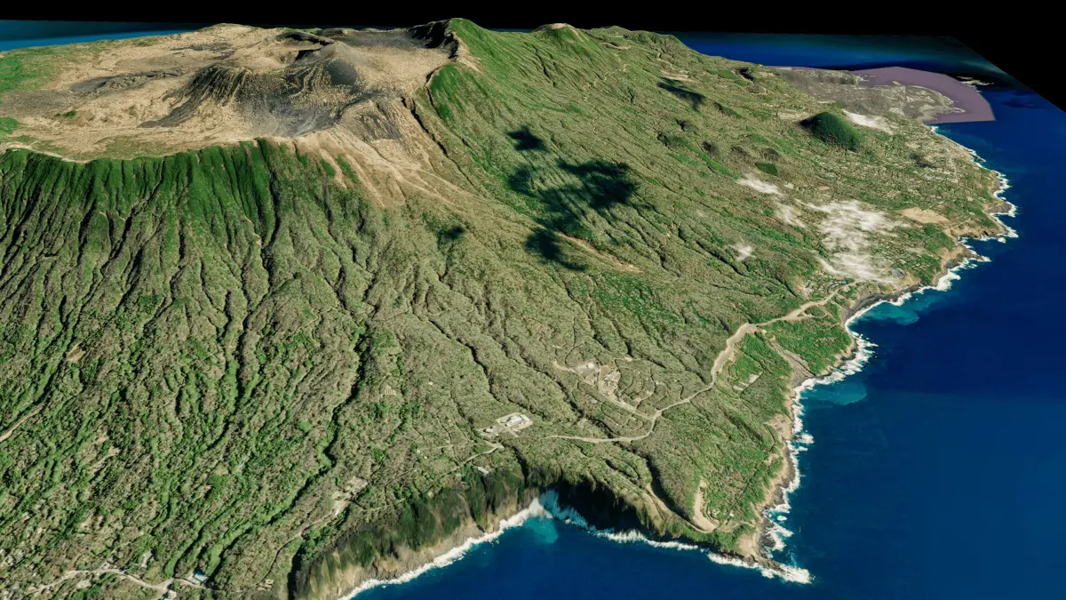 oshima island 3d model terrain. 3d model of oshima island with its landscape of mountains, beaches and forests.