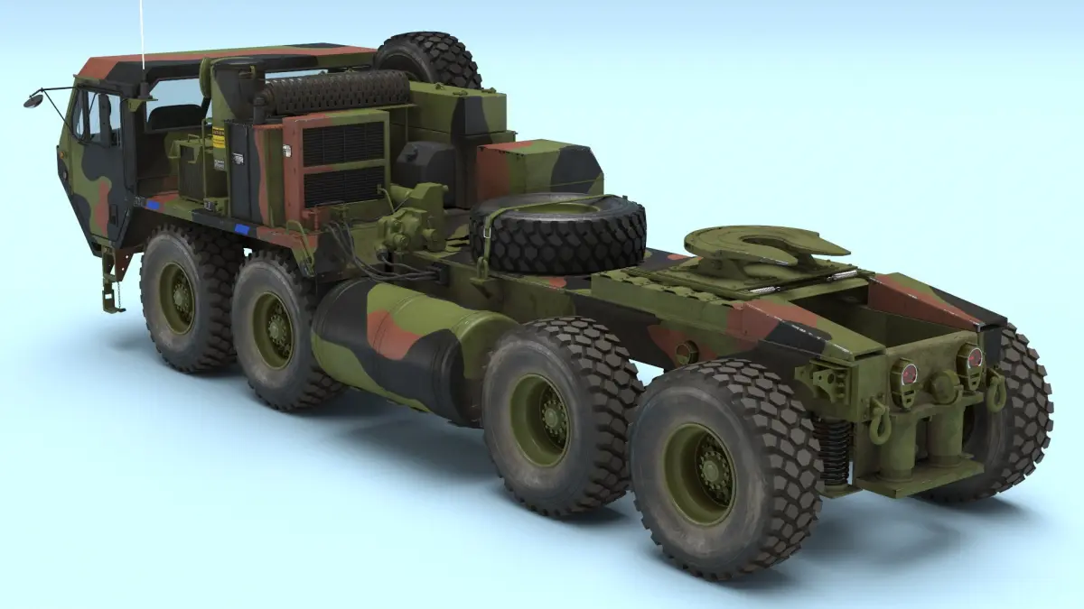 Oshkosh HEMTT M985 Military Tractor with Spare Tire Camo is a high quality, photo real 3d model that will enhance detail and realism to any of your rendering projects. The model has a fully textured, detailed design that allows for close-up renders, and was originally modeled in 3ds Max 2020 and rendered with V-Ray. Renders have no postprocessing!