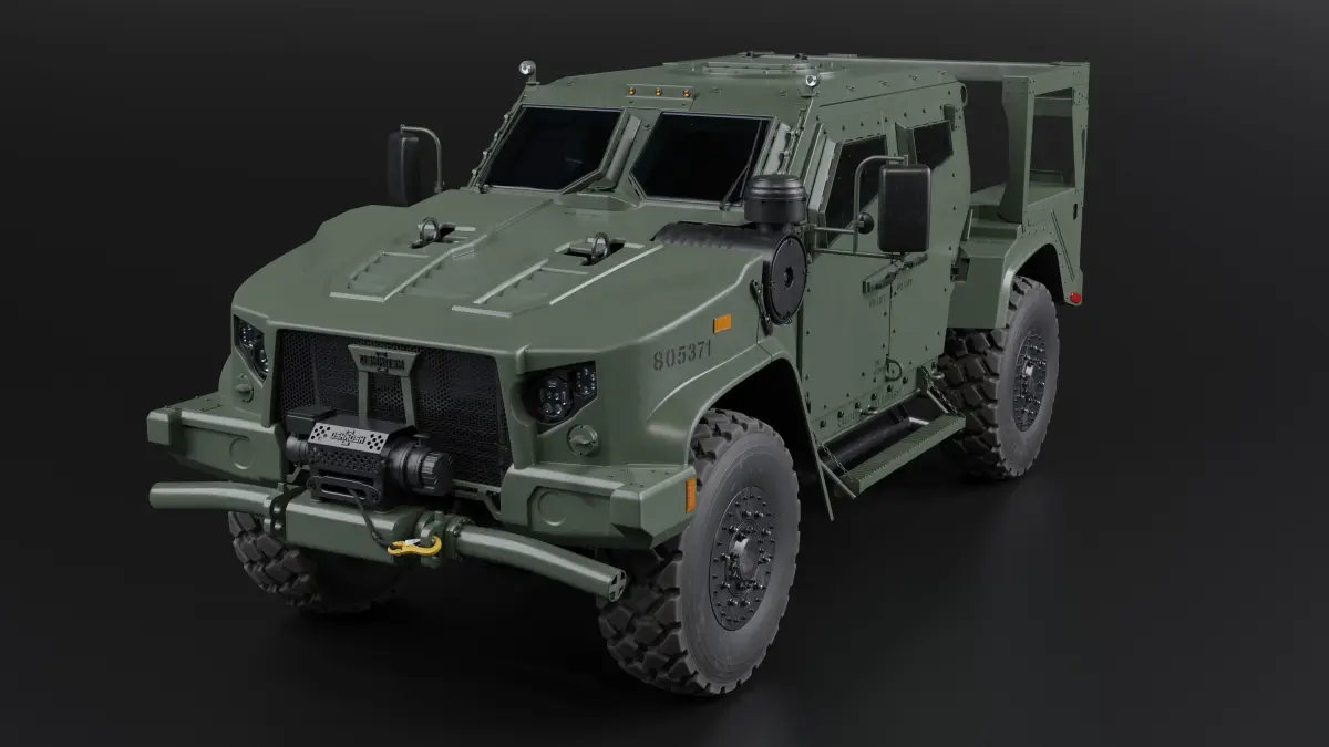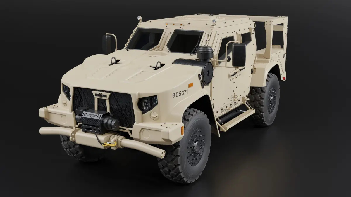 This is a high poly 3d model of an Oshkosh JLTV military vehicle which stands out with a clear topology, detailed textures, and a full rig. Modelled, rigged and textured in blender 3.0