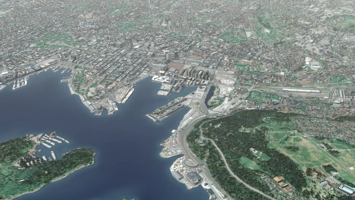 Oslo Norway, Scandinavian City. Fully textured 3D model. Accurate geo-referenced model, ideal for arch-viz, city planning or games/simulations. Set covers 16km x 10km, thousands of unique buildings, major and minor roads, trees, bushes and parks, railway tracks, water surface, building rooftops, cranes, clutter and more. Includes the Eiffel Tower and Notre Dame Cathedral.