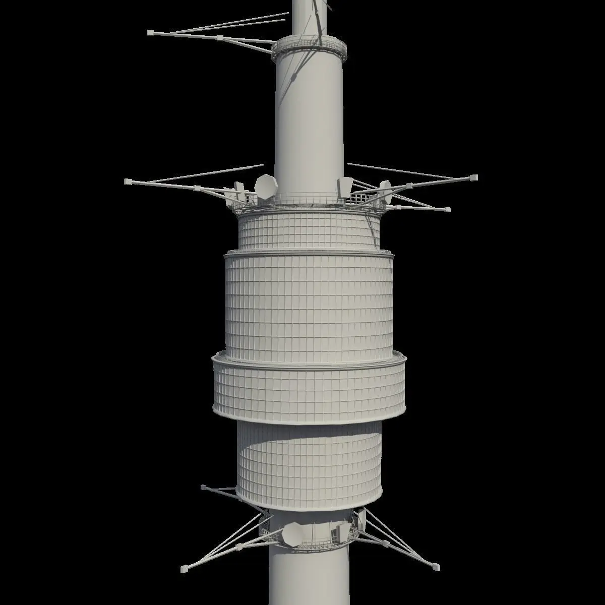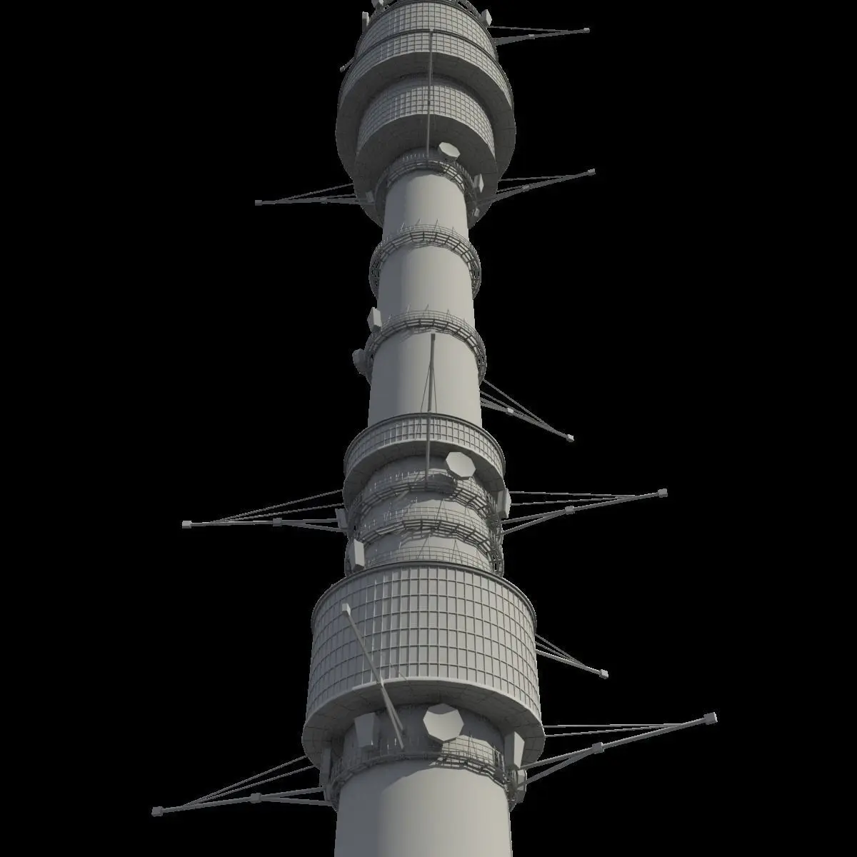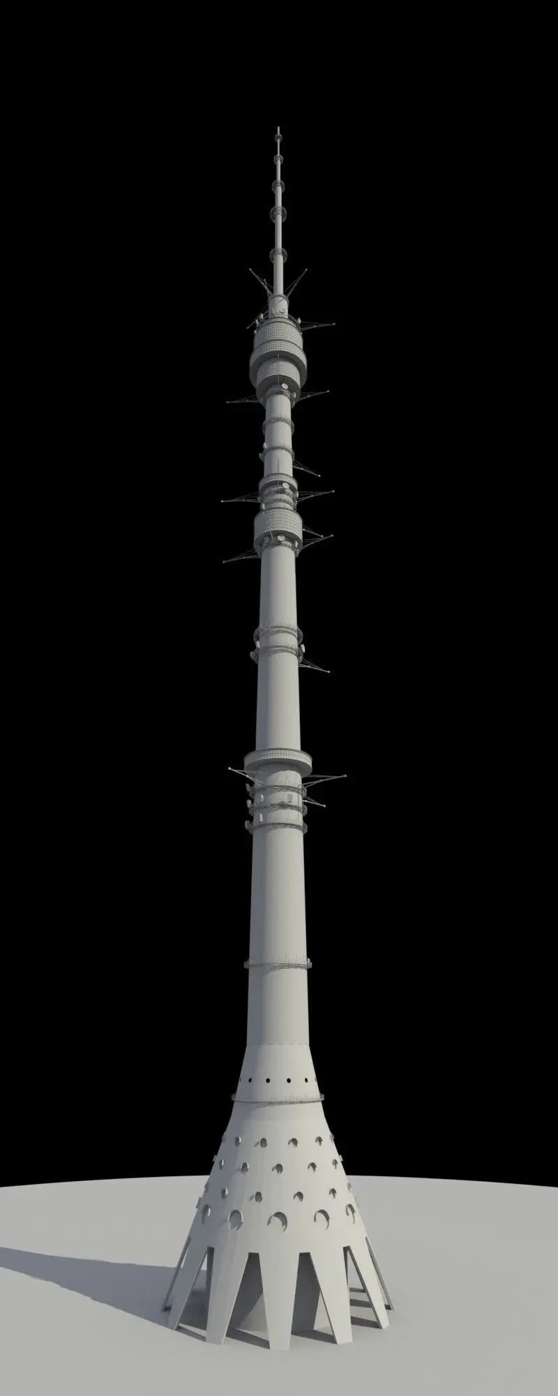 This is a detailed model of Moscow Ostankino Television tower.The model suitable for fly-through animation or as environment object.The model divided on four groups based on materials: walls, glass, metal and misc.All textures are included.