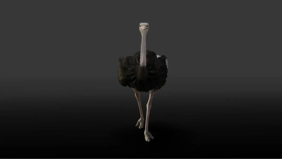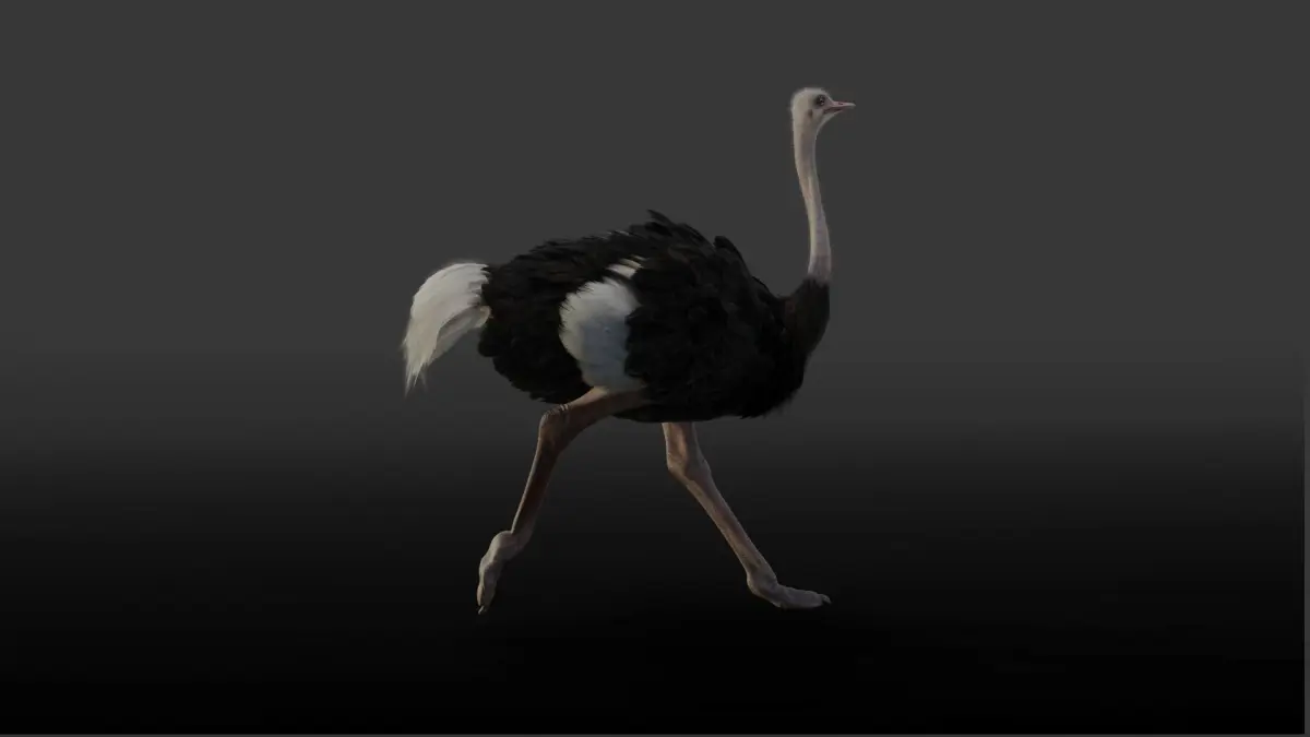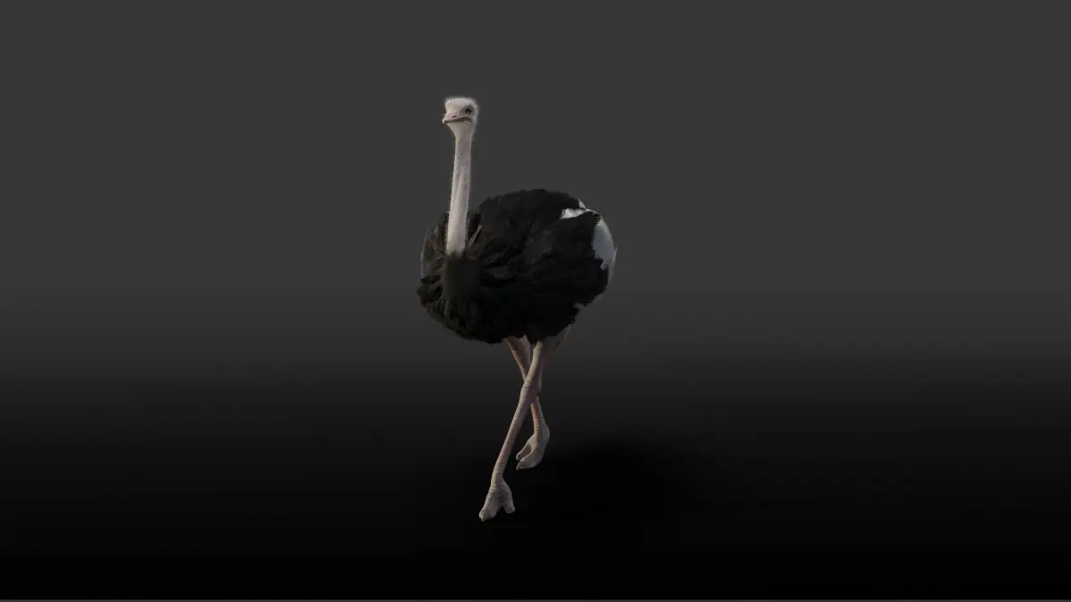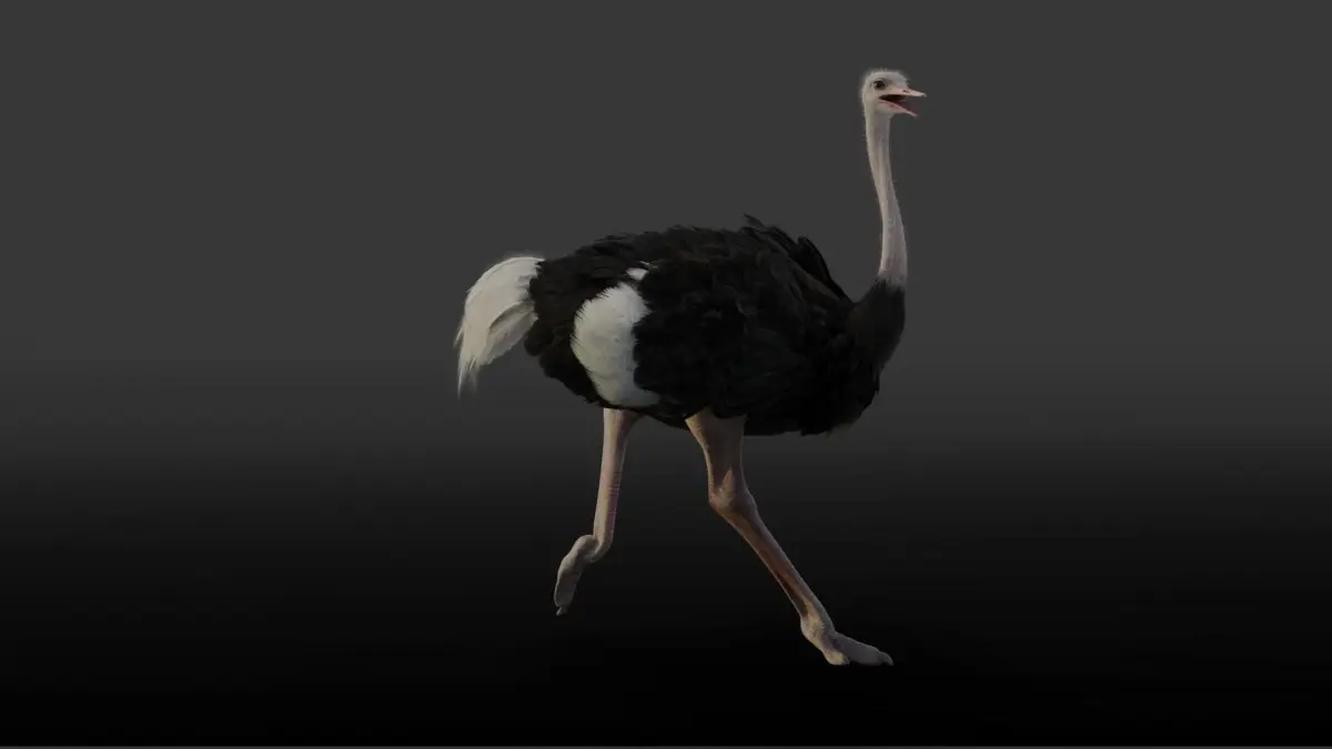 This is a high-quality struthio camelus model with multiple 6K body maps and feather maps. Fur is made with feathers and hair for a realistic effect. The model is made with Blender and Cycles renderer at real-world scale.
