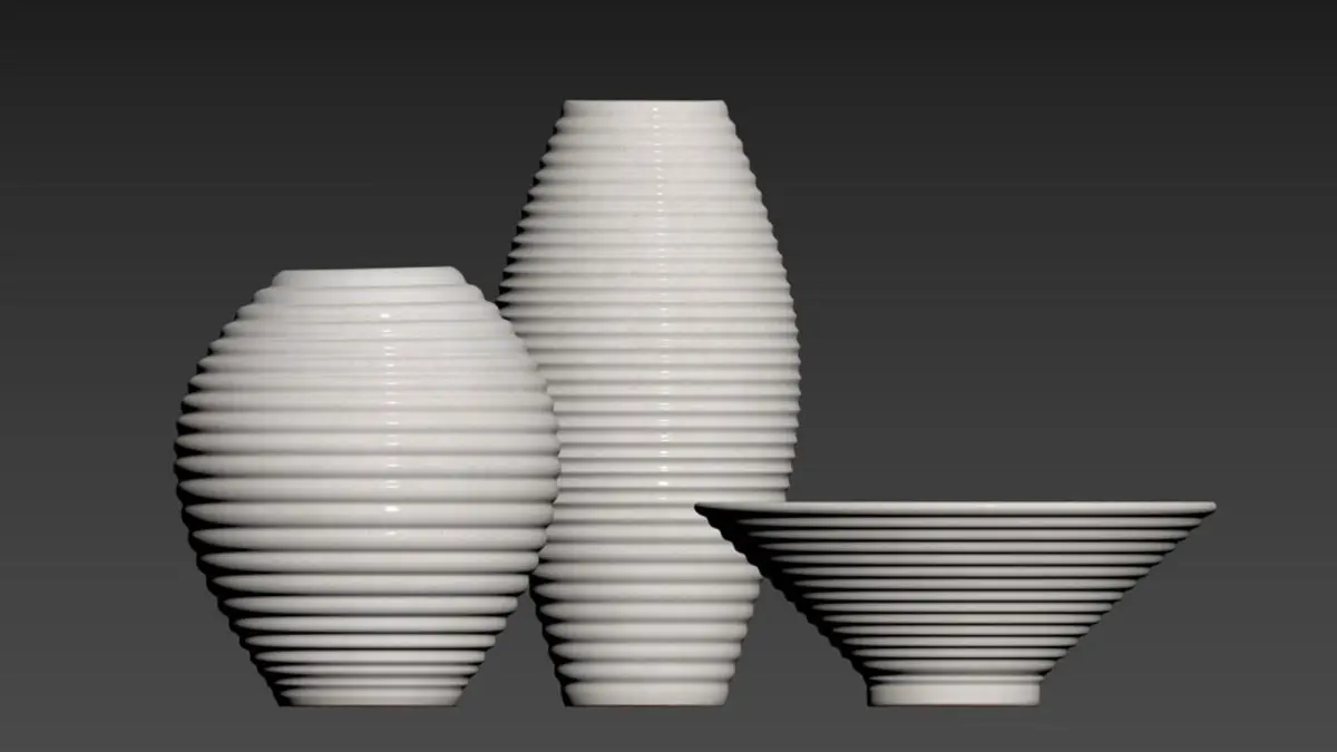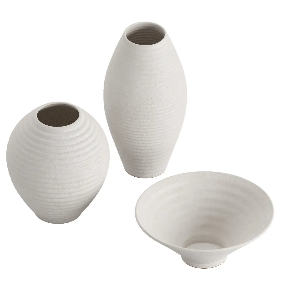 Otsu Round White Ceramic Textured Vase 3D model