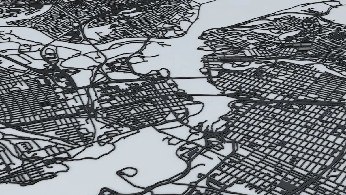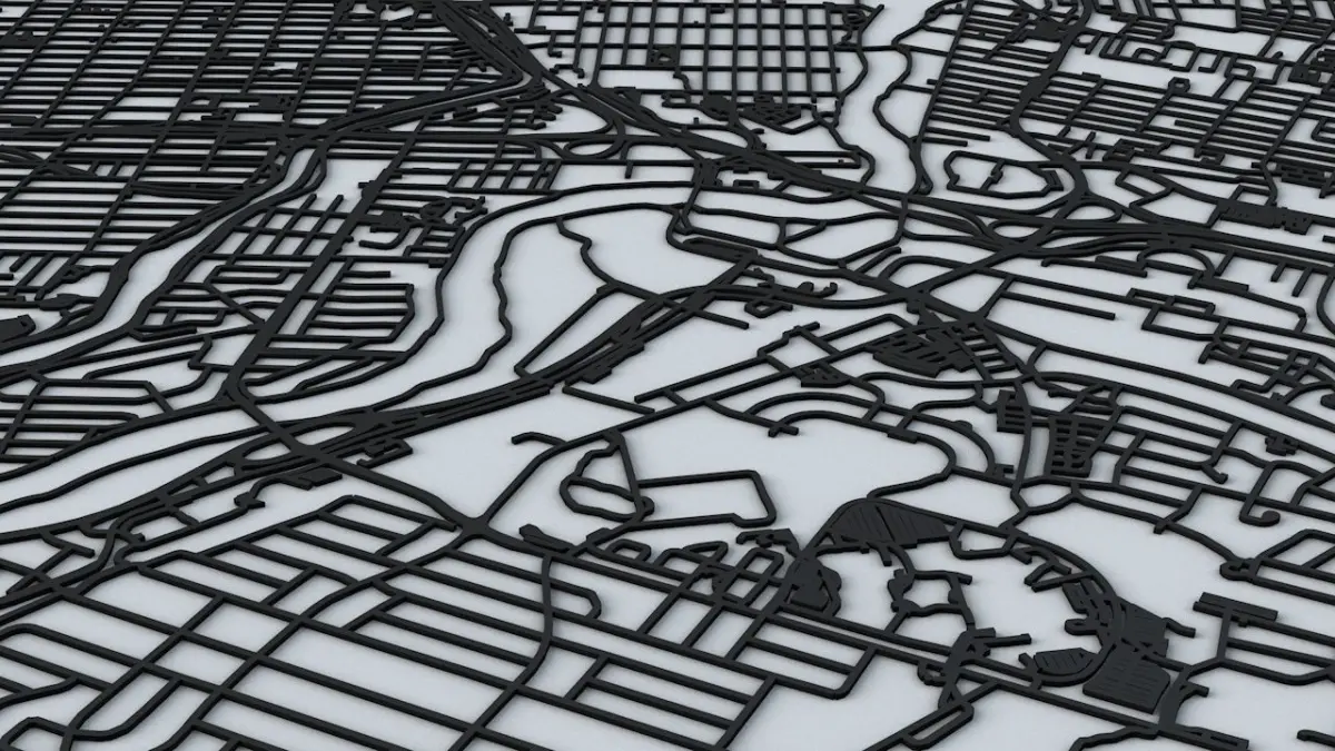 - the model is positioned on a flat surface (road network is on the “floor” - no elevation data included)