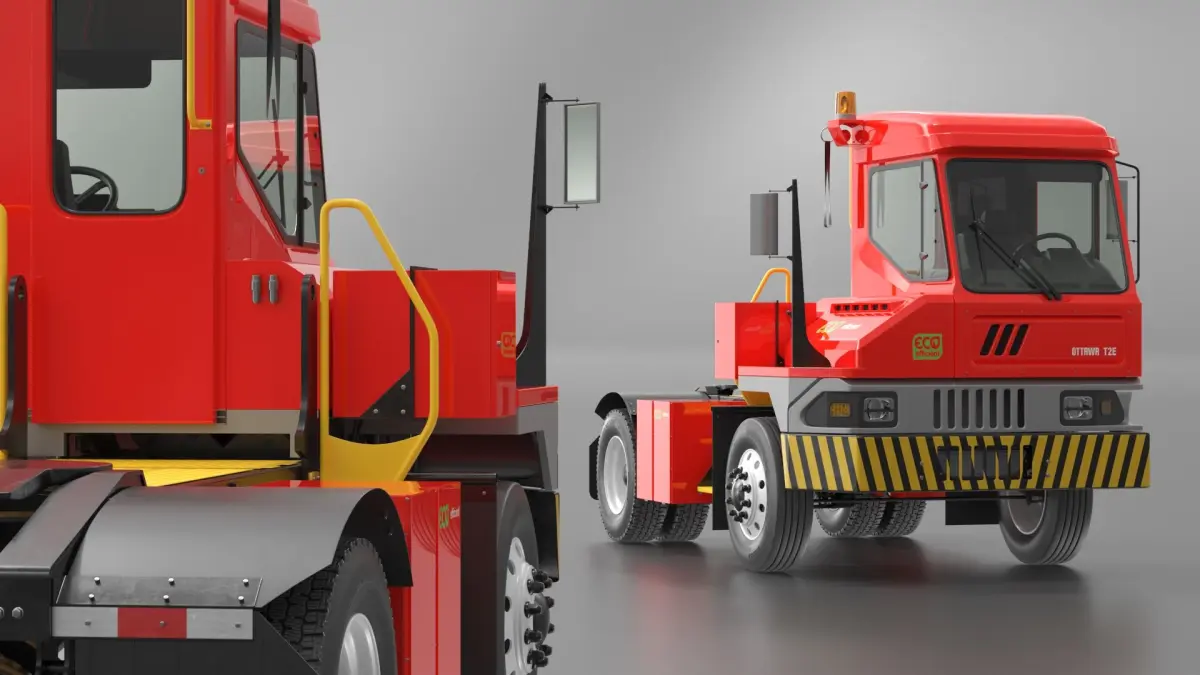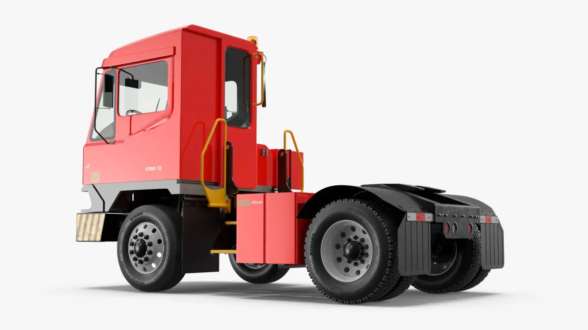 Ottawa T2E Terminal Yard Tractor Red is a three-dimensional model of Kalmar Ottawa T2E Electric Terminal Tractor, a zero-emission, electric terminal tractor designed for efficient yard operations.