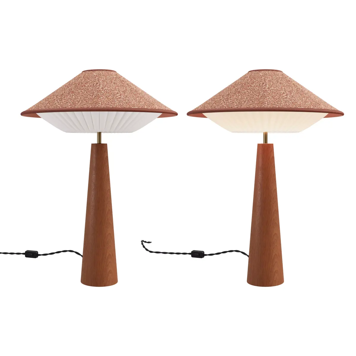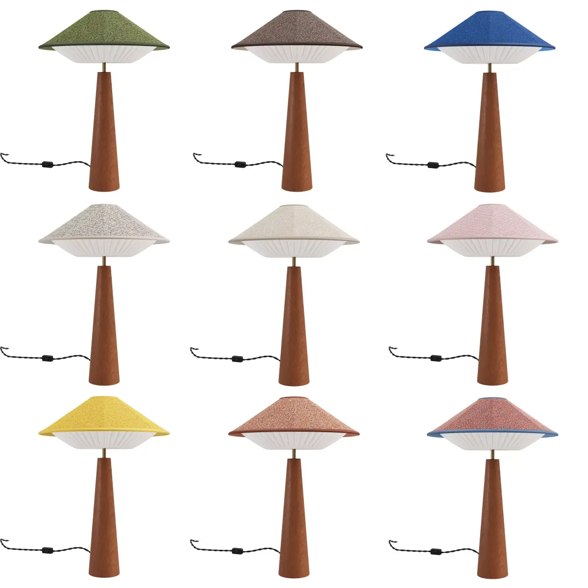 The Otto collection features elegant fabric lampshades with distinctive geometric forms and refined proportions, suitable for modern and contemporary interiors.