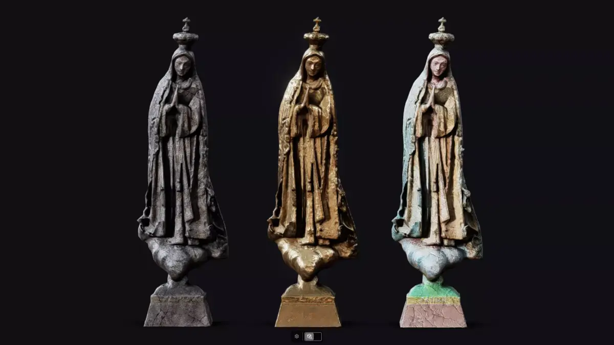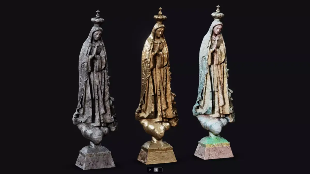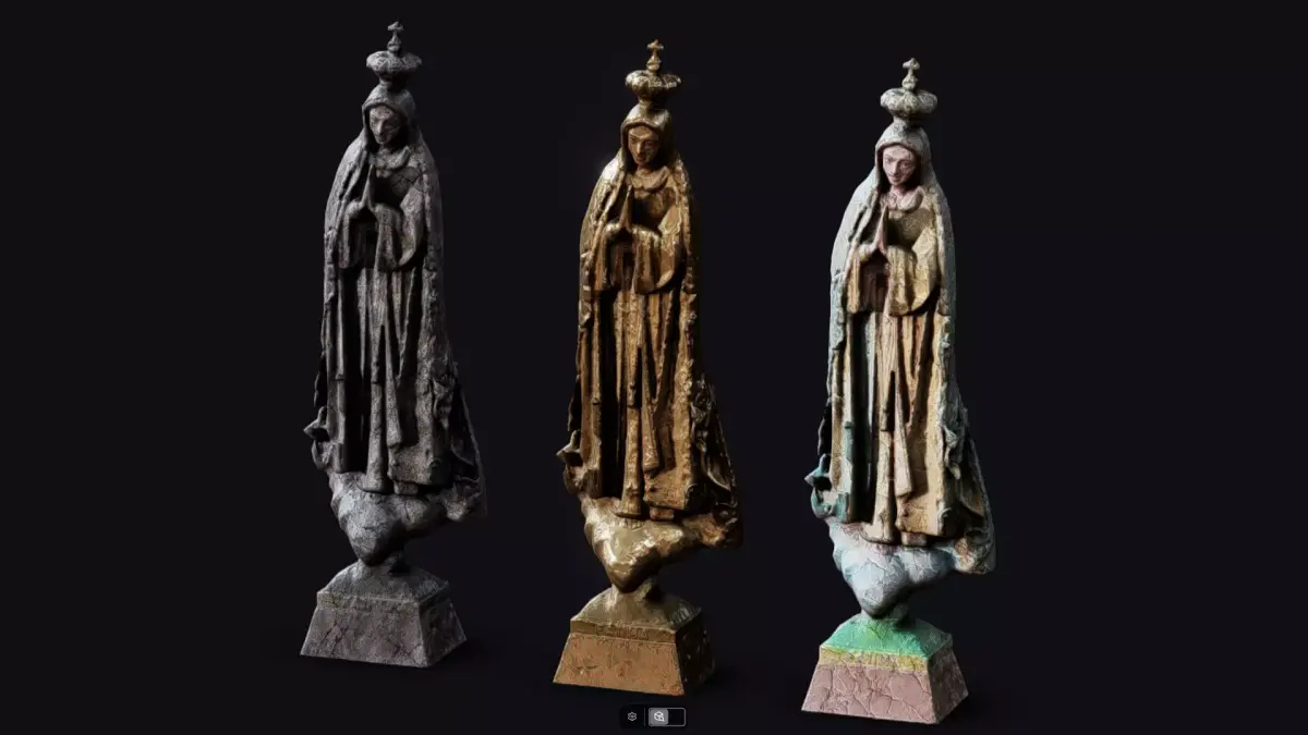 3 materials. One for each mesh. Polychrome, gold and stone variants.