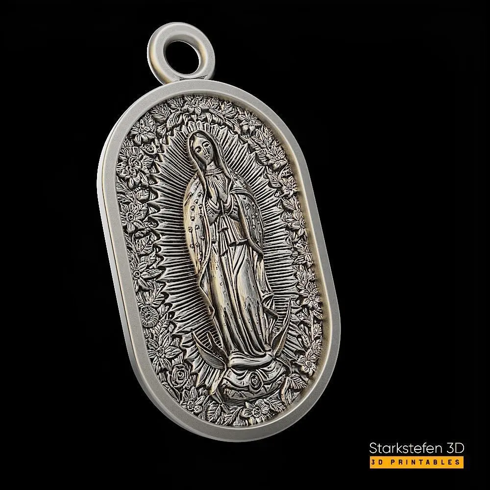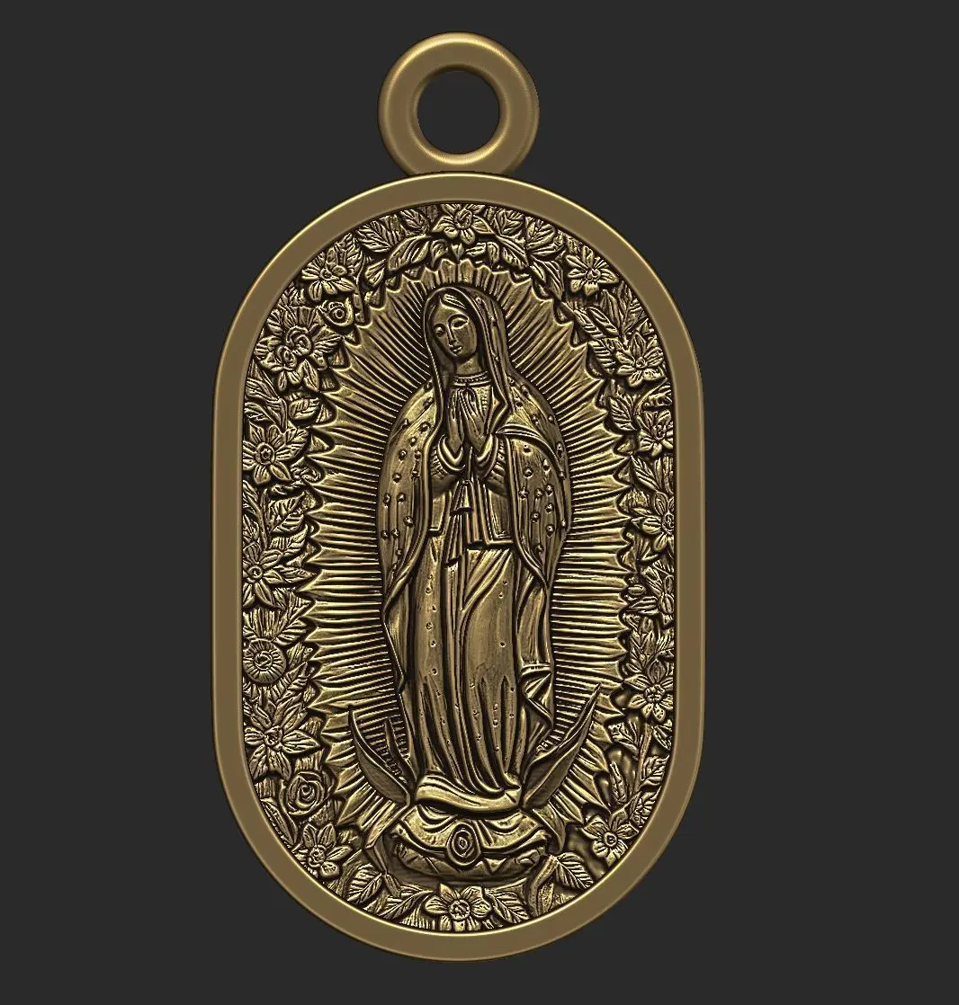 Our Lady of Guadalupe Pendant 3D Print Model (STL File for 3D Printing and CNC)