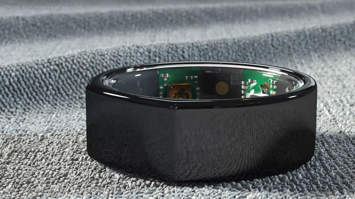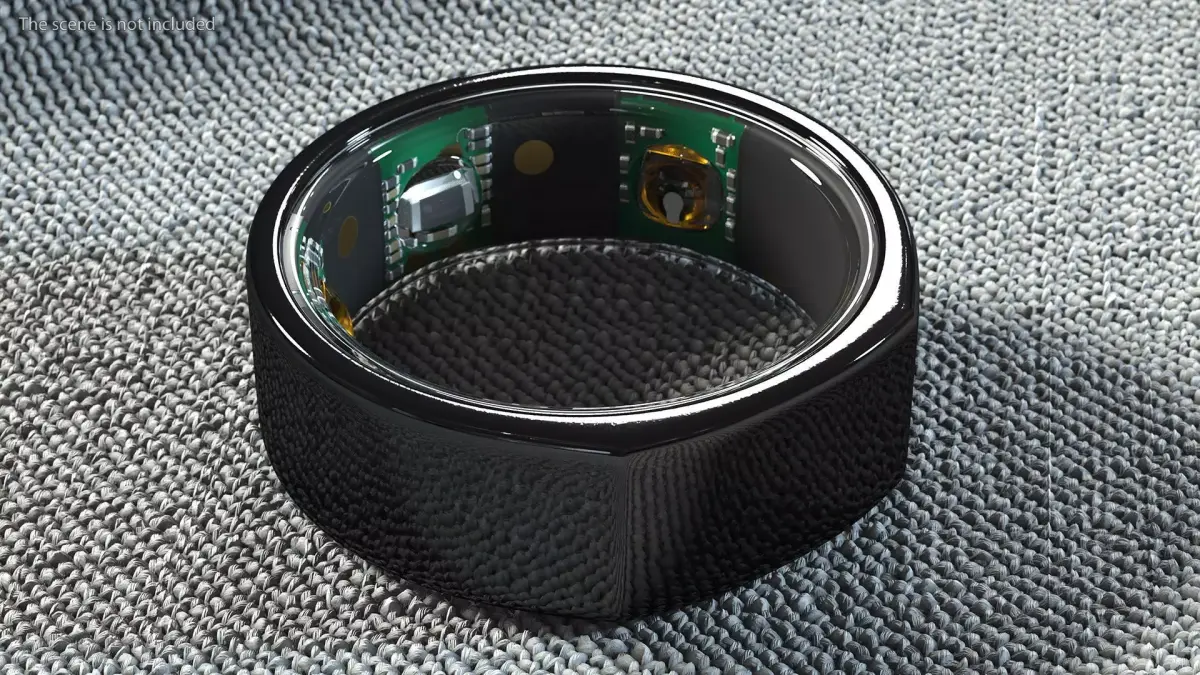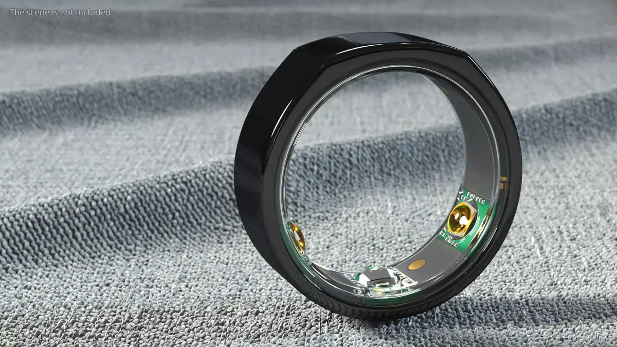 Oura Ring Black is a three-dimensional model of a wearable electronic device which used to monitoring human consumer sleep, temperature, recovery, activity, stress, heart rate, and more.