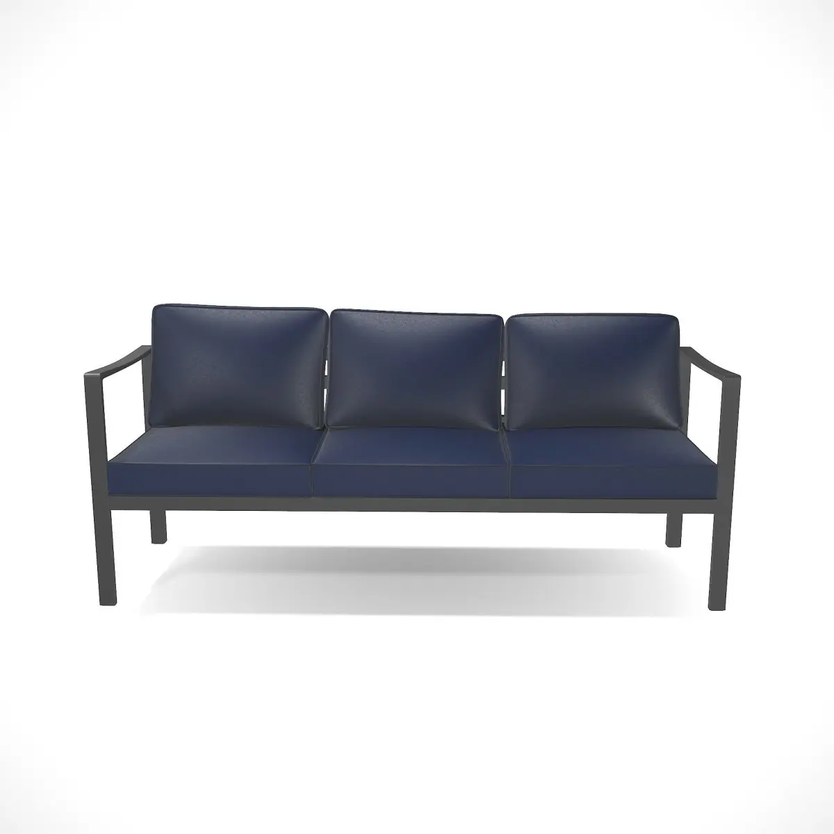 A contemporary outdoor bench with a sling fabric construction. Made of durable and weather-resistant materials, such as aluminum and polyester fabric. The bench includes a cushioned seat and backrest for added comfort. Its sleek and streamlined structure, combined with the sling fabric, creates a modern and inviting seating option for patios, decks, or poolside areas.