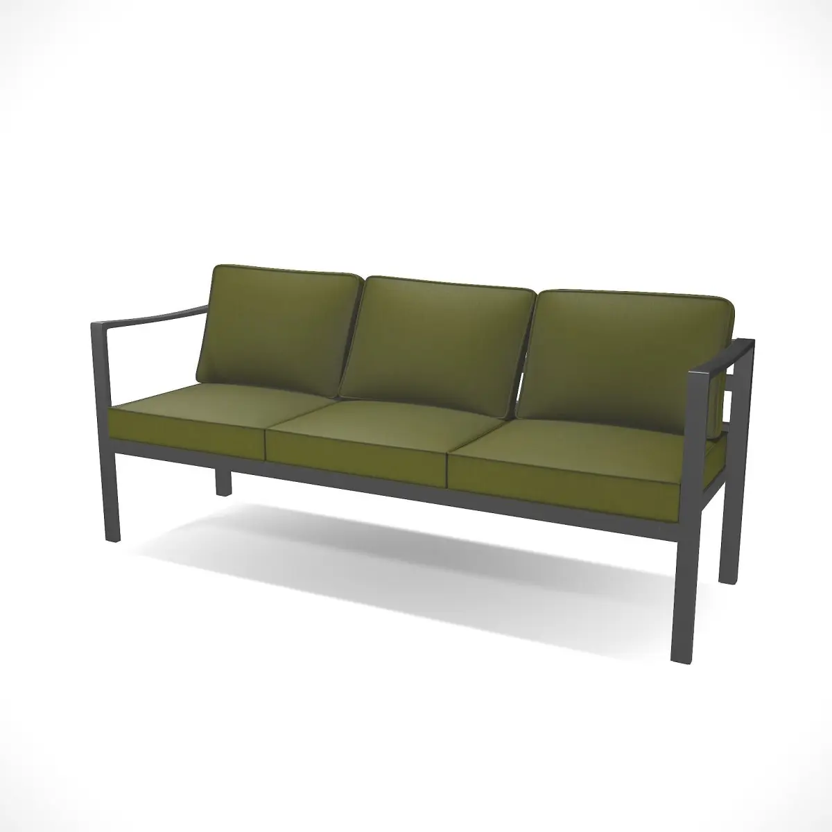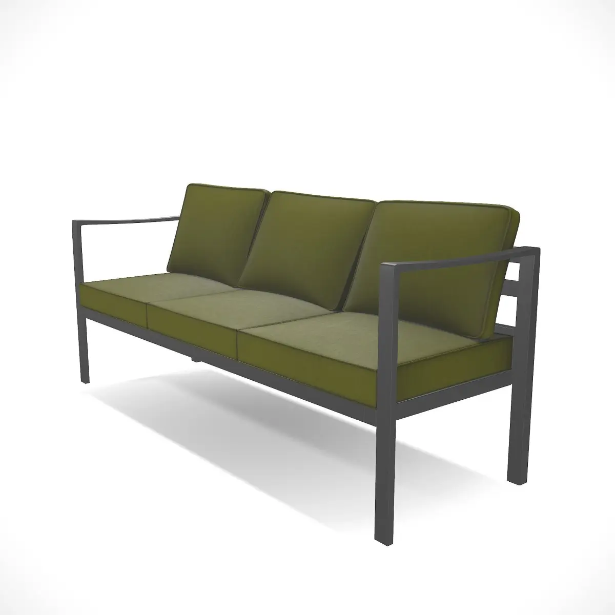 A contemporary outdoor bench with a sling fabric construction. Made of durable and weather-resistant materials, such as aluminum and polyester fabric. The bench includes a cushioned seat and backrest for added comfort. Its sleek and streamlined structure, combined with the sling fabric, creates a modern and inviting seating option for patios, decks, or poolside areas.