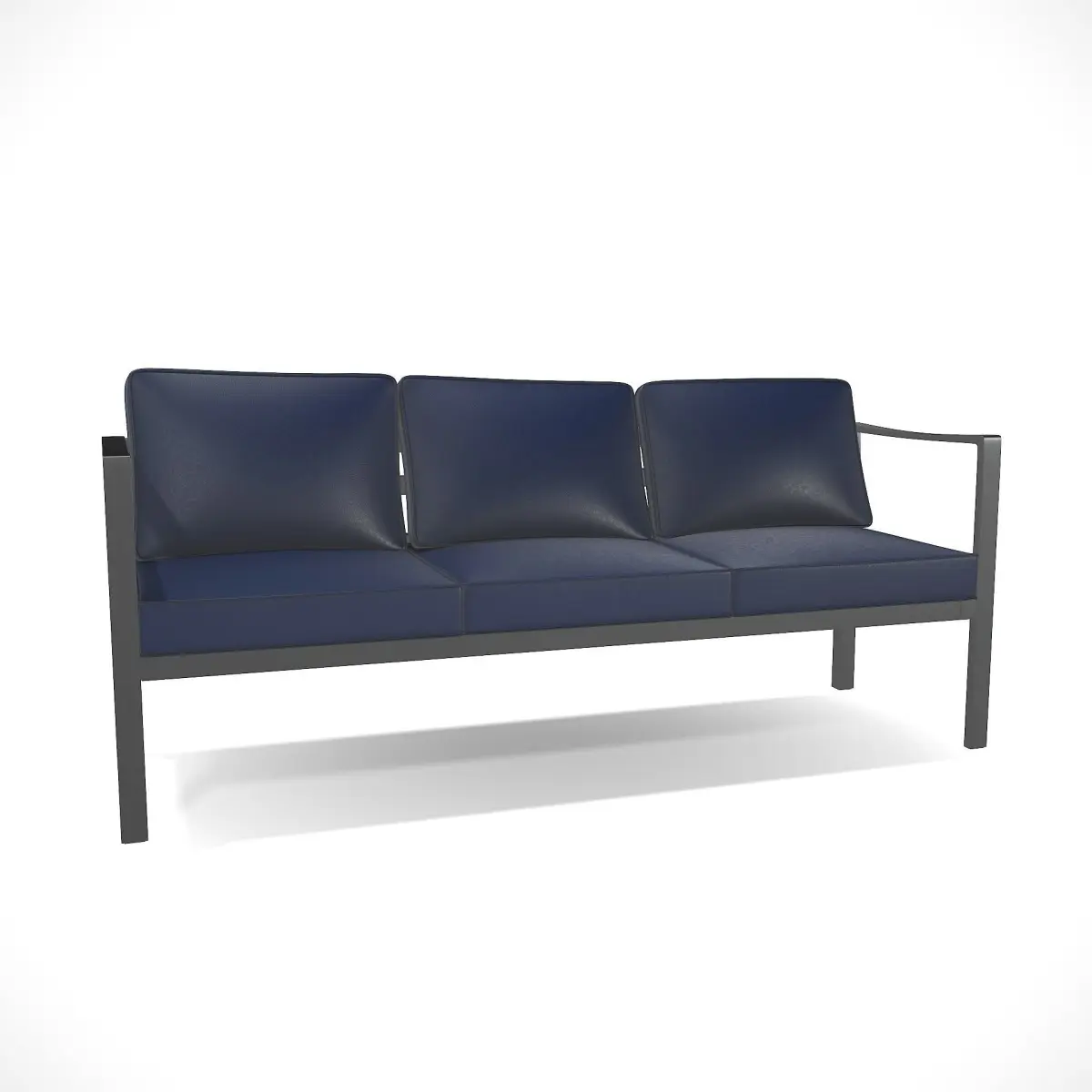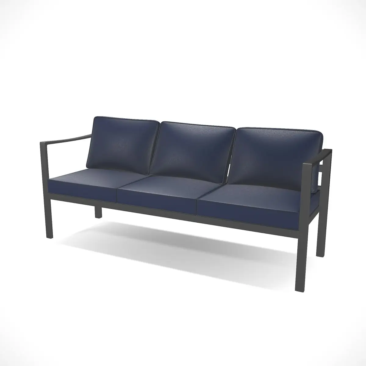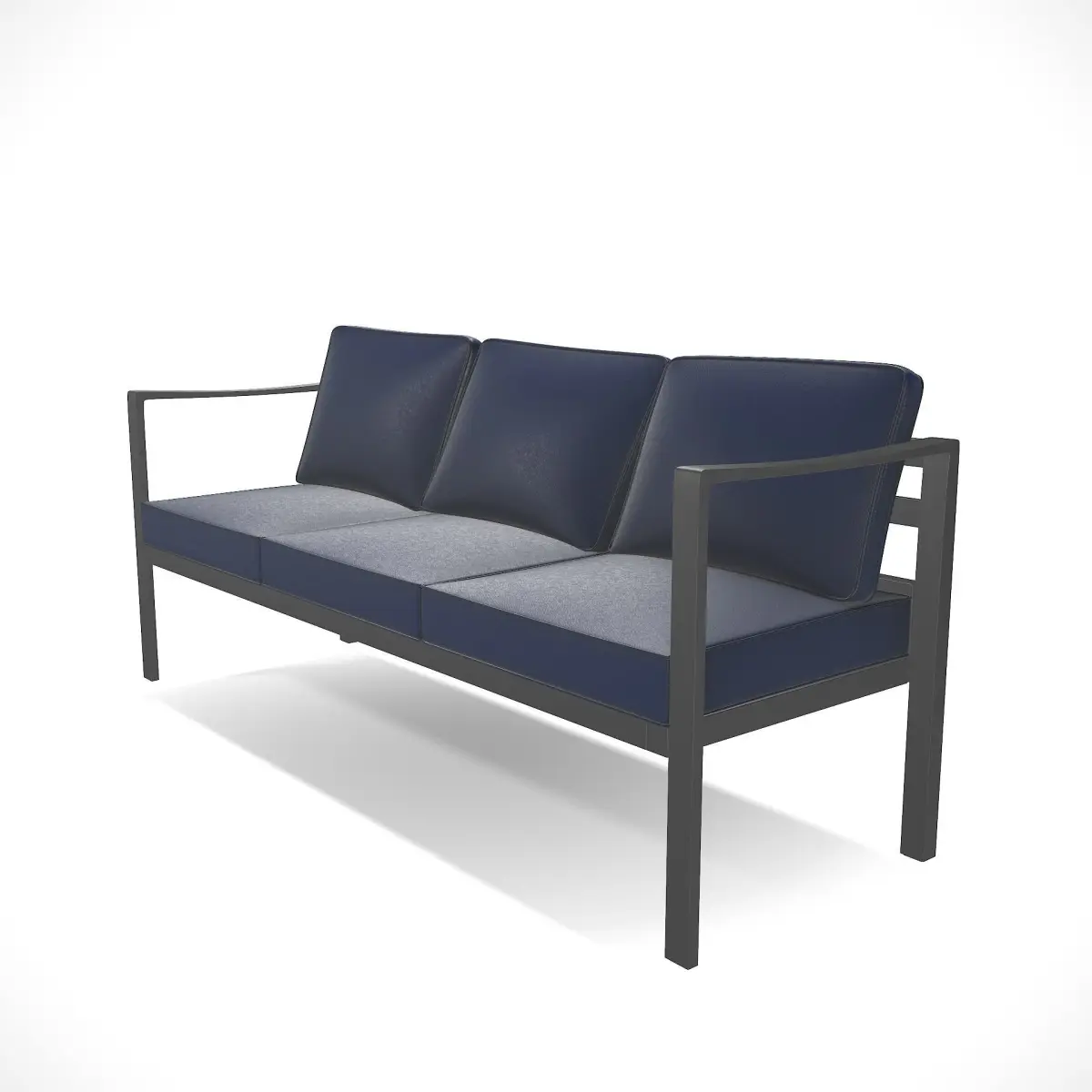 A contemporary outdoor bench with a sling fabric construction. Made of durable and weather-resistant materials, such as aluminum and polyester fabric. The bench includes a cushioned seat and backrest for added comfort. Its sleek and streamlined structure, combined with the sling fabric, creates a modern and inviting seating option for patios, decks, or poolside areas.