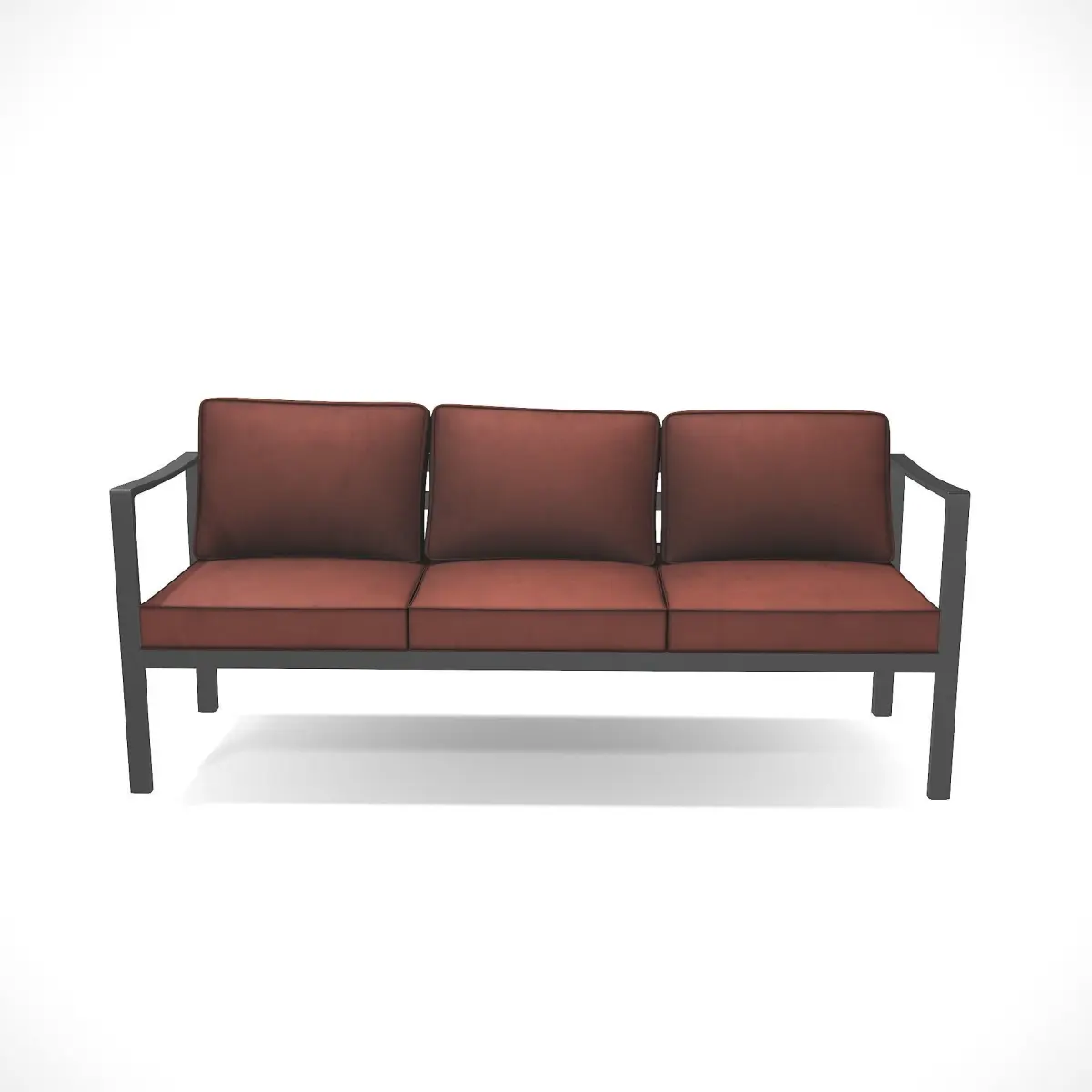 A contemporary outdoor bench with a sling fabric construction. Made of durable and weather-resistant materials, such as aluminum and polyester fabric. The bench includes a cushioned seat and backrest for added comfort. Its sleek and streamlined structure, combined with the sling fabric, creates a modern and inviting seating option for patios, decks, or poolside areas.