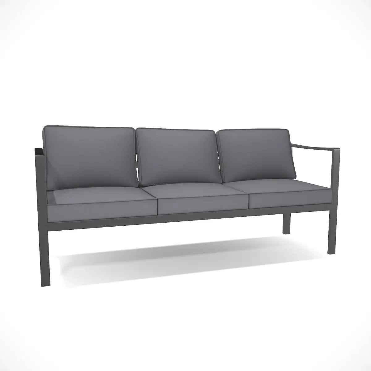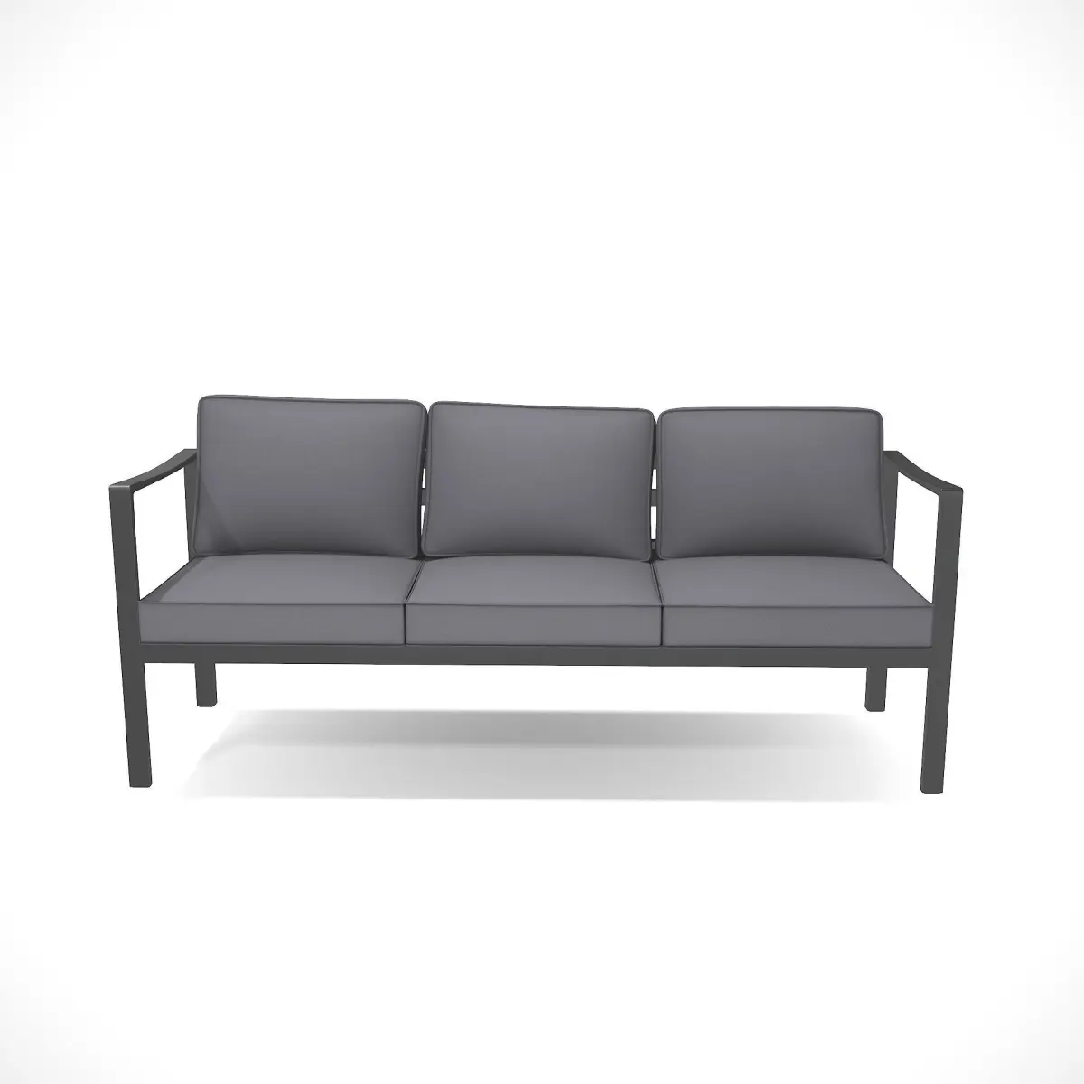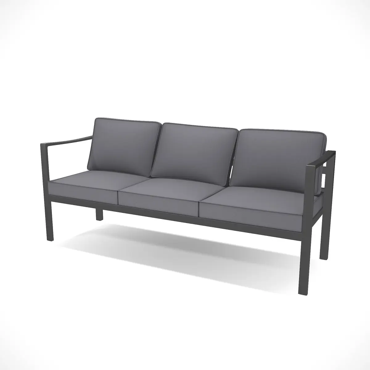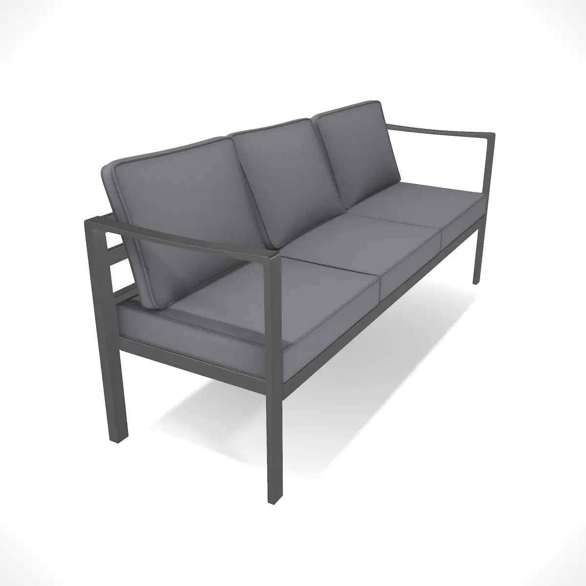 A contemporary outdoor bench with a sling fabric construction. Made of durable and weather-resistant materials, such as aluminum and polyester fabric. The bench includes a cushioned seat and backrest for added comfort. Its sleek and streamlined structure, combined with the sling fabric, creates a modern and inviting seating option for patios, decks, or poolside areas.