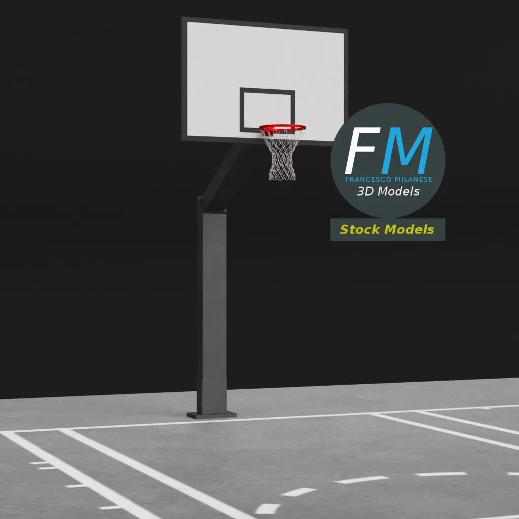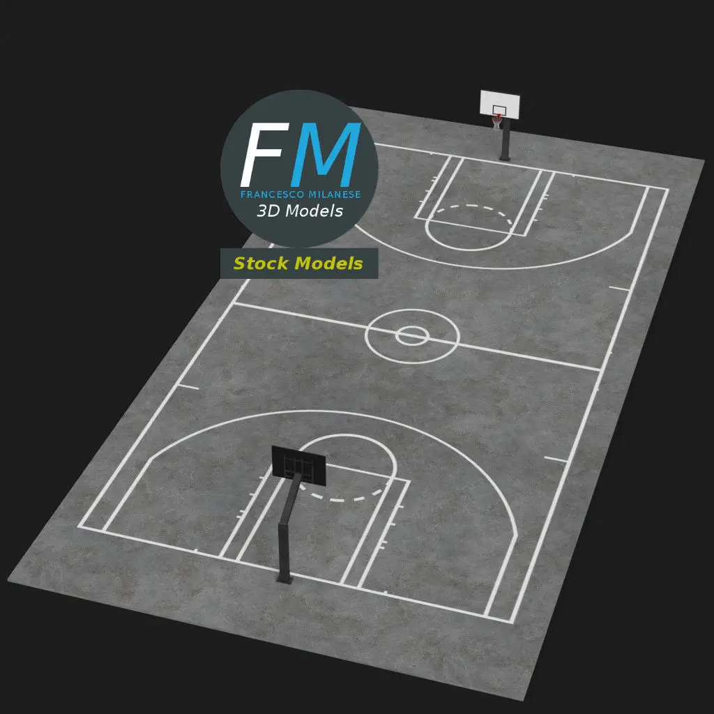 Outdoor basketball court 3D Model. 3 individual objects (court, hoop 1, hoop 2), each one with its own non overlapping UV Layout map (the hoops share the same UV and Materials), Material and PBR Textures set. Production-ready 3D Model, with PBR materials, textures, non overlapping UV Layout map provided in the package.